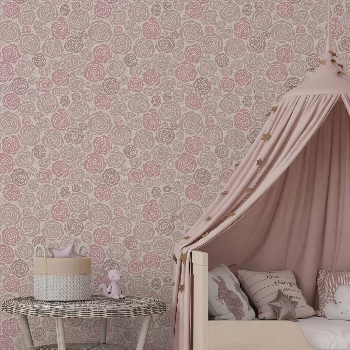 Papiers peints Roses roses en spirale et éclaboussures sur fond clair Nr. a00955