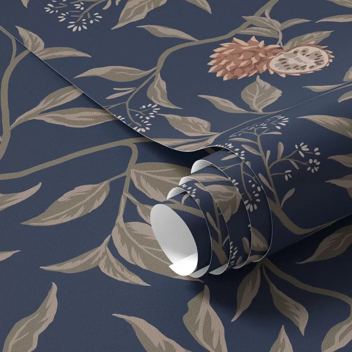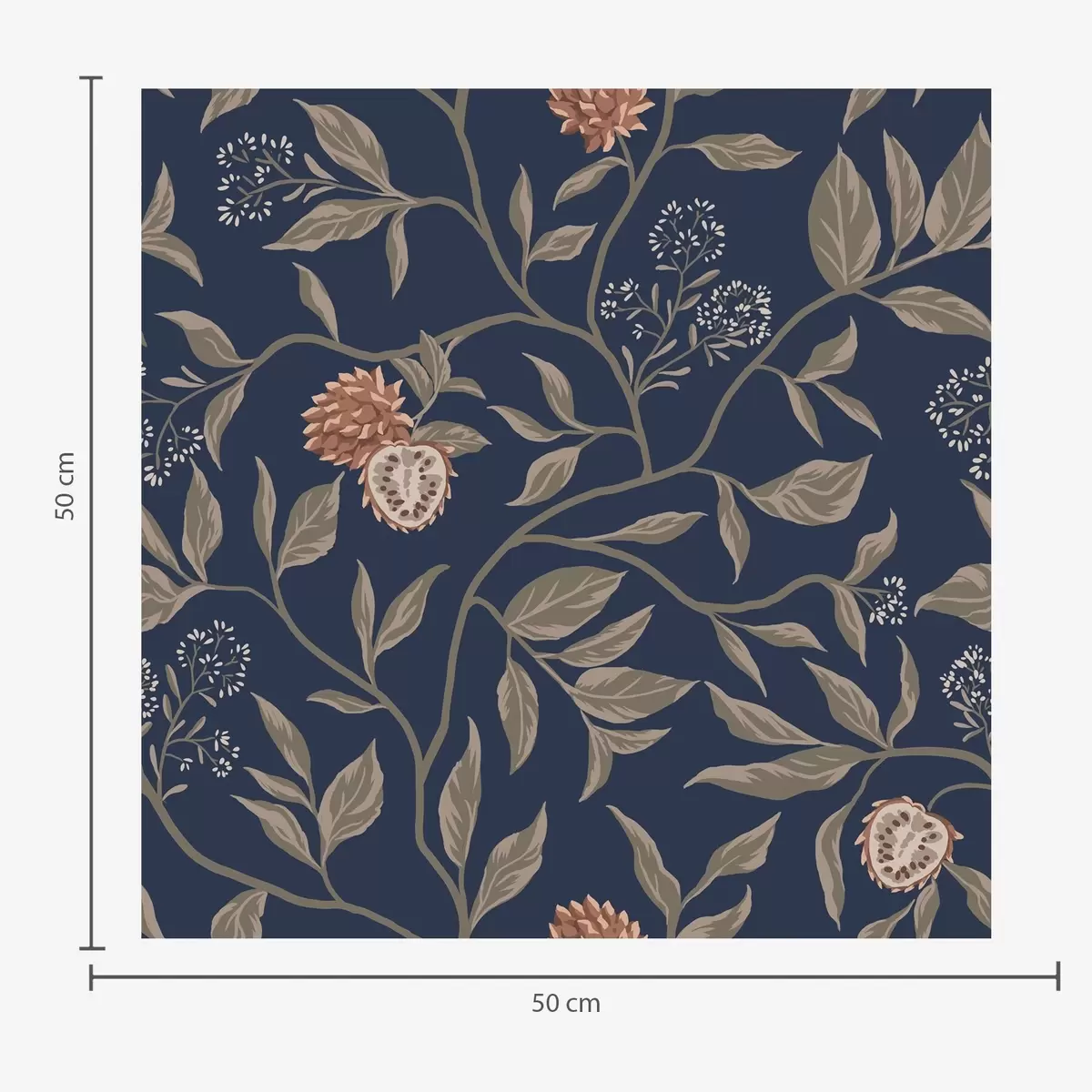 Papiers peints Jardin bleu avec des branches, des fruits et de minuscules fleurs Nr. a00959