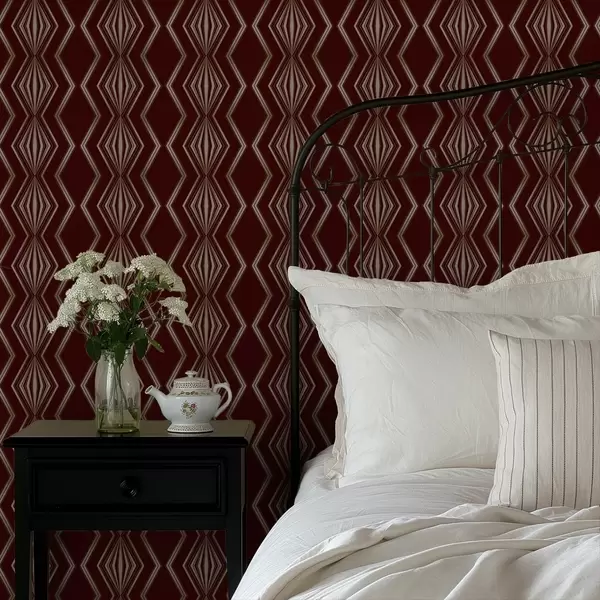 Papiers peints Fond bordeaux avec des losanges rythmiques et des lignes en zigzag Nr. a00974