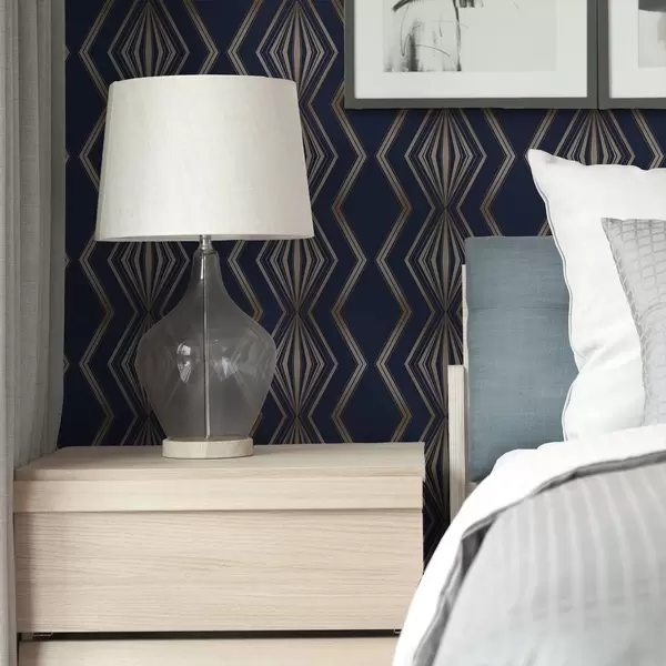 Papiers peints Fond bleu foncé avec des losanges géométriques et des zigzags Nr. a00974v2