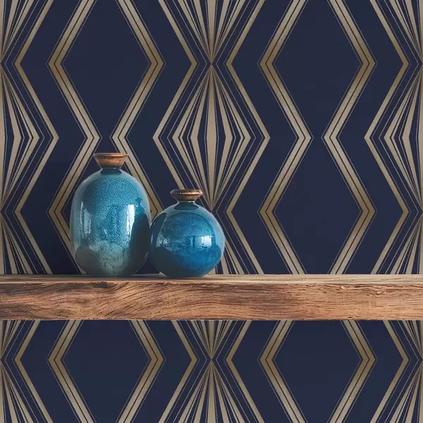 Papiers peints Fond bleu foncé avec des losanges géométriques et des zigzags Nr. a00974v2
