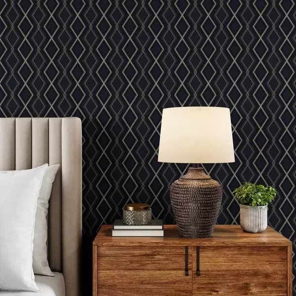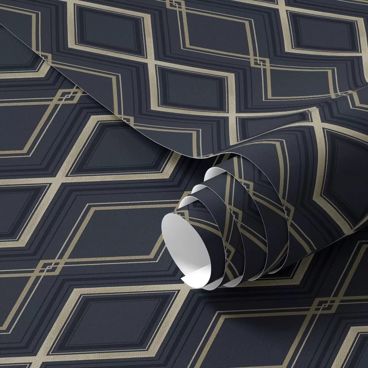 Papiers peints Grille en losanges bleu foncé avec de fines lignes claires Nr. a00975