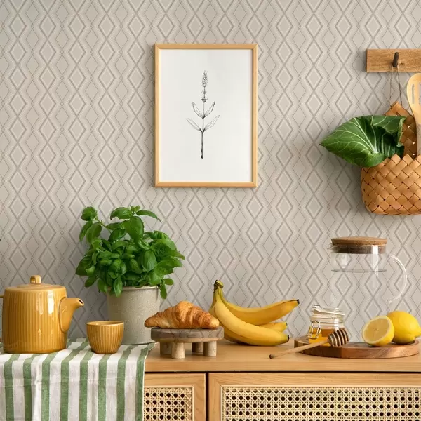 Papiers peints Fond beige clair avec un quadrillage multicouche en losange Nr. a00975v2