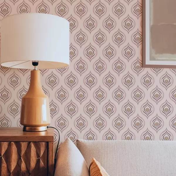 Papiers peints Motif rythmique en forme de goutte avec une fleur sur un fond poudré Nr. a00977