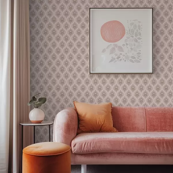 Papiers peints Motif rythmique en forme de goutte avec une fleur sur un fond poudré Nr. a00977