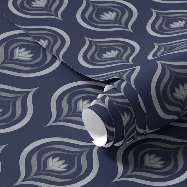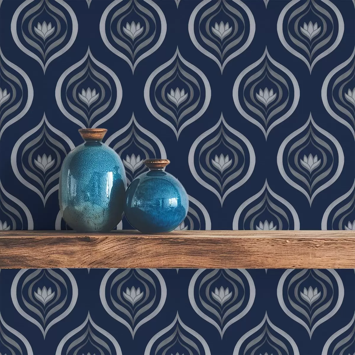 Papiers peints Motifs contrastés de gouttelettes et de fleurs sur fond bleu marine foncé Nr. a00977v1