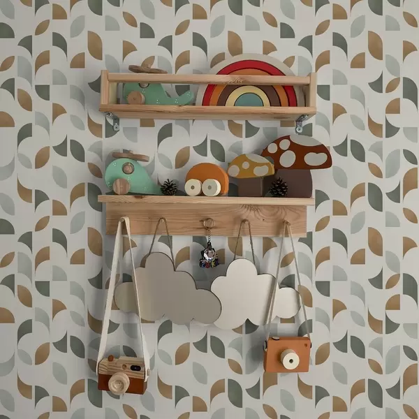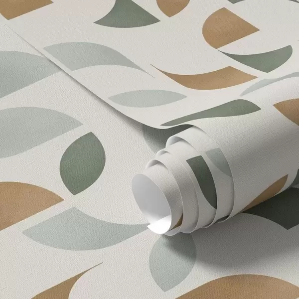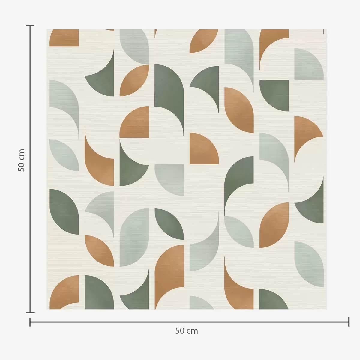 Papiers peints Demi-cercles abstraits et feuilles en vert et terre cuite Nr. a00985
