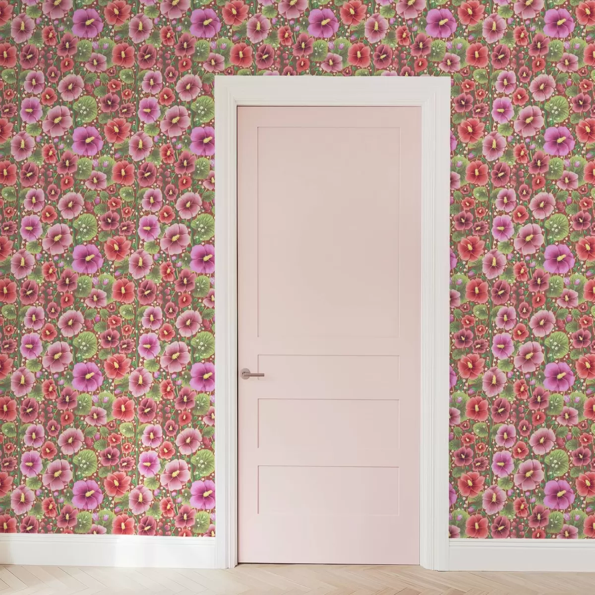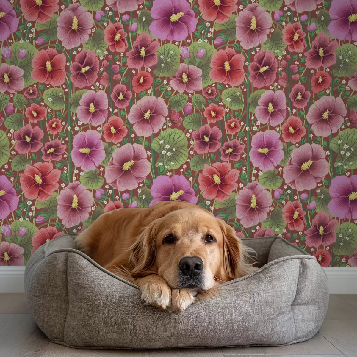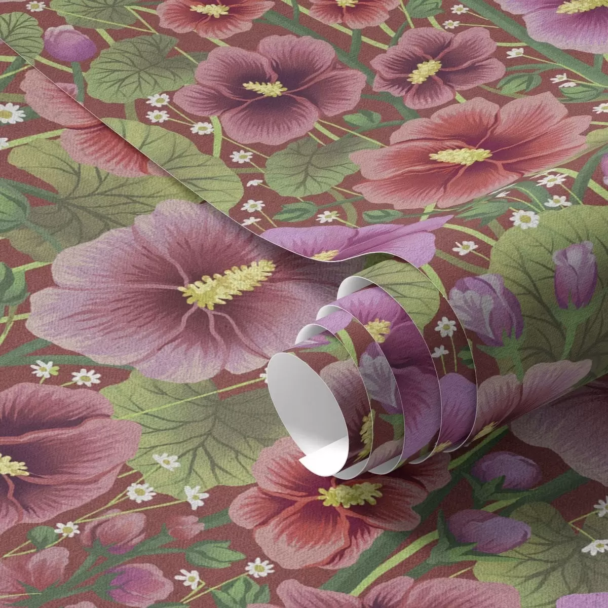 Papiers peints Hibiscus en fleurs sur un fond brun-rouge chaud Nr. a00993v1