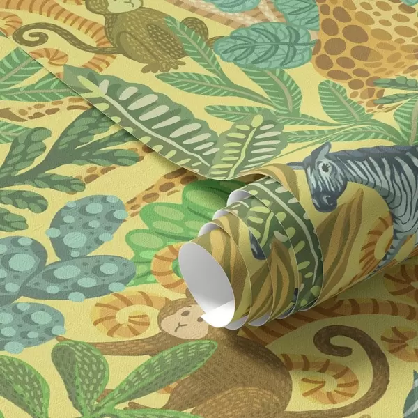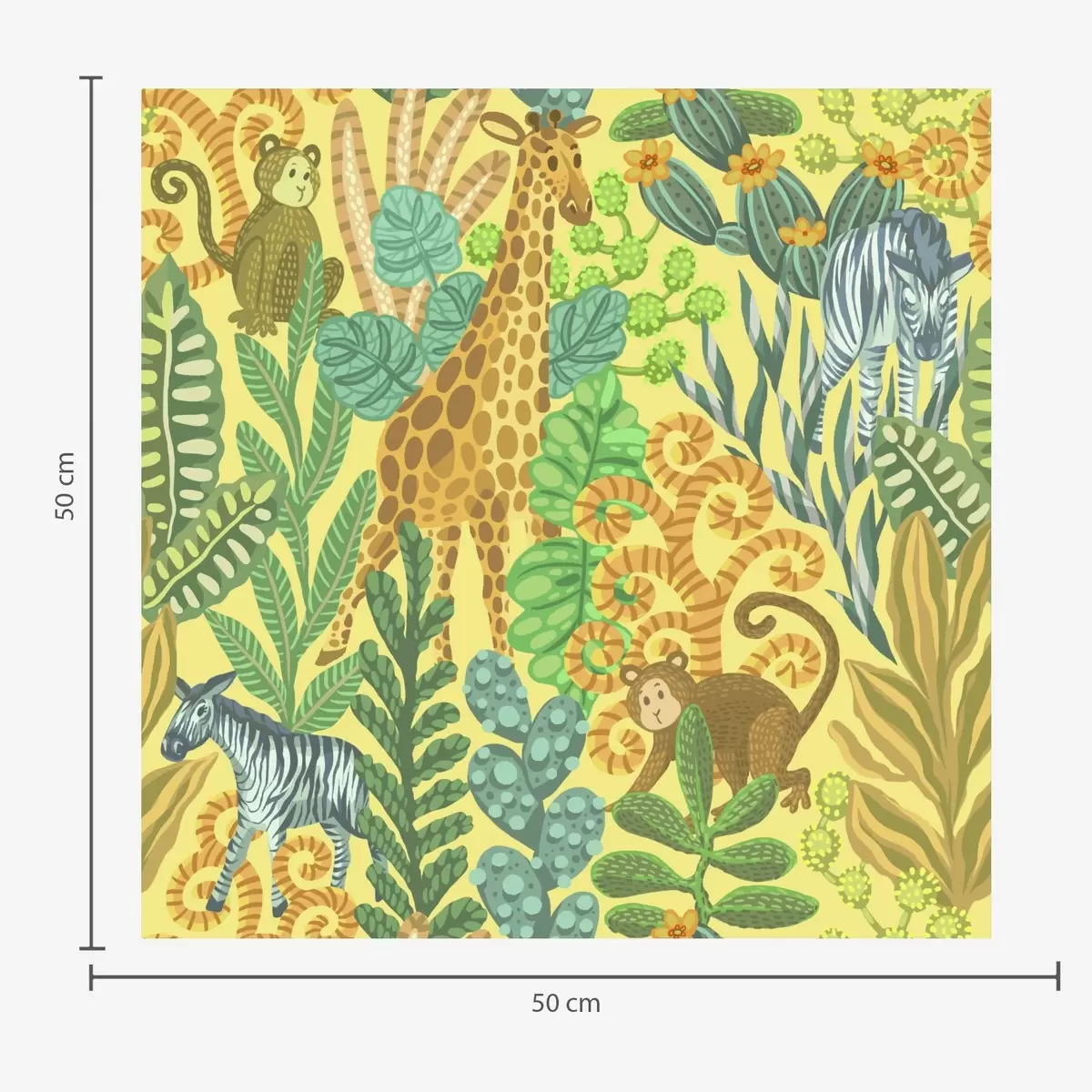 Papiers peints Girafe, zèbre et singe dans une savane jaune vif Nr. a01000v1