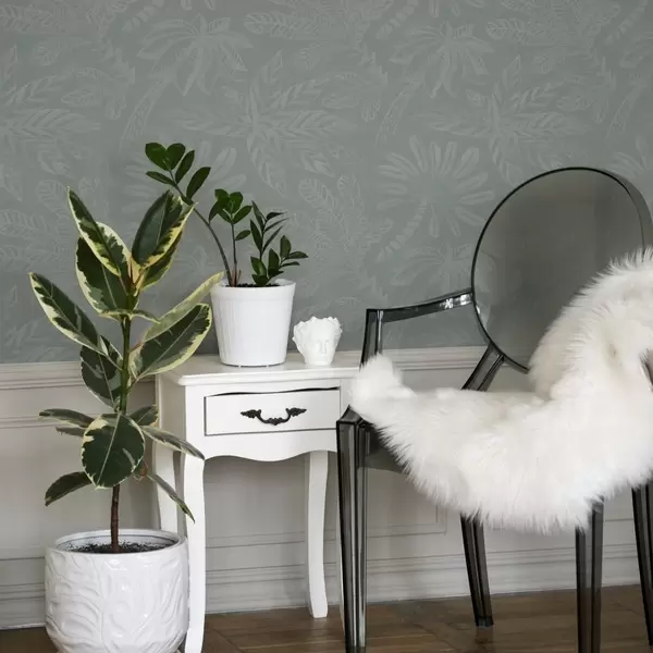 Papiers peints Grandes feuilles tropicales mates dans une palette gris menthe Nr. a01001
