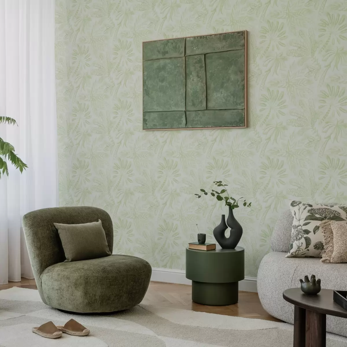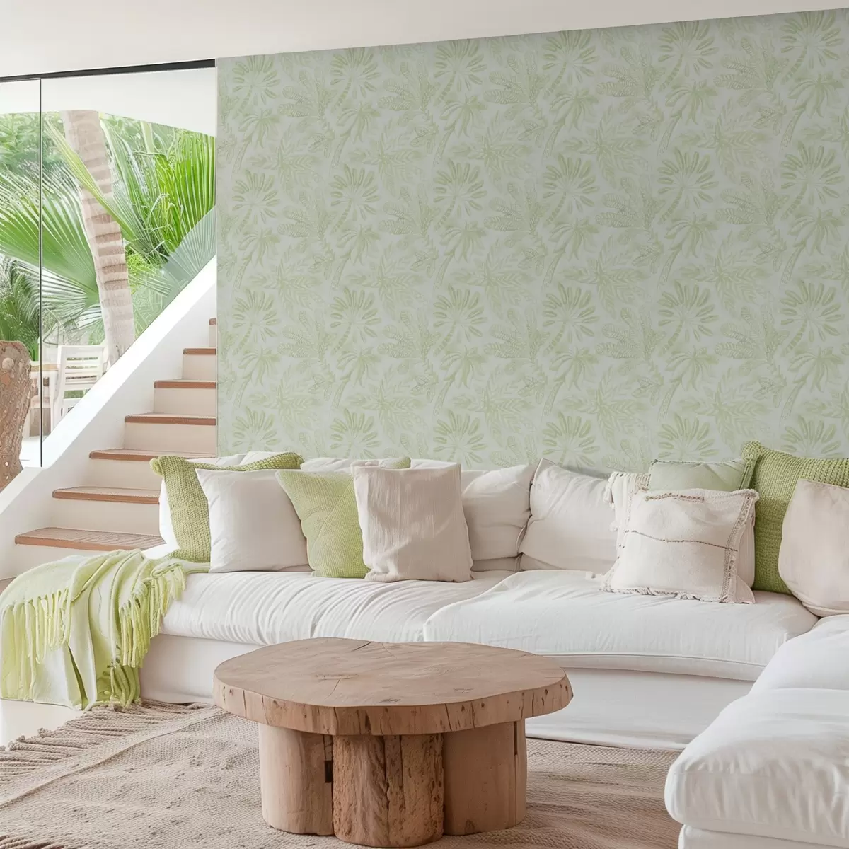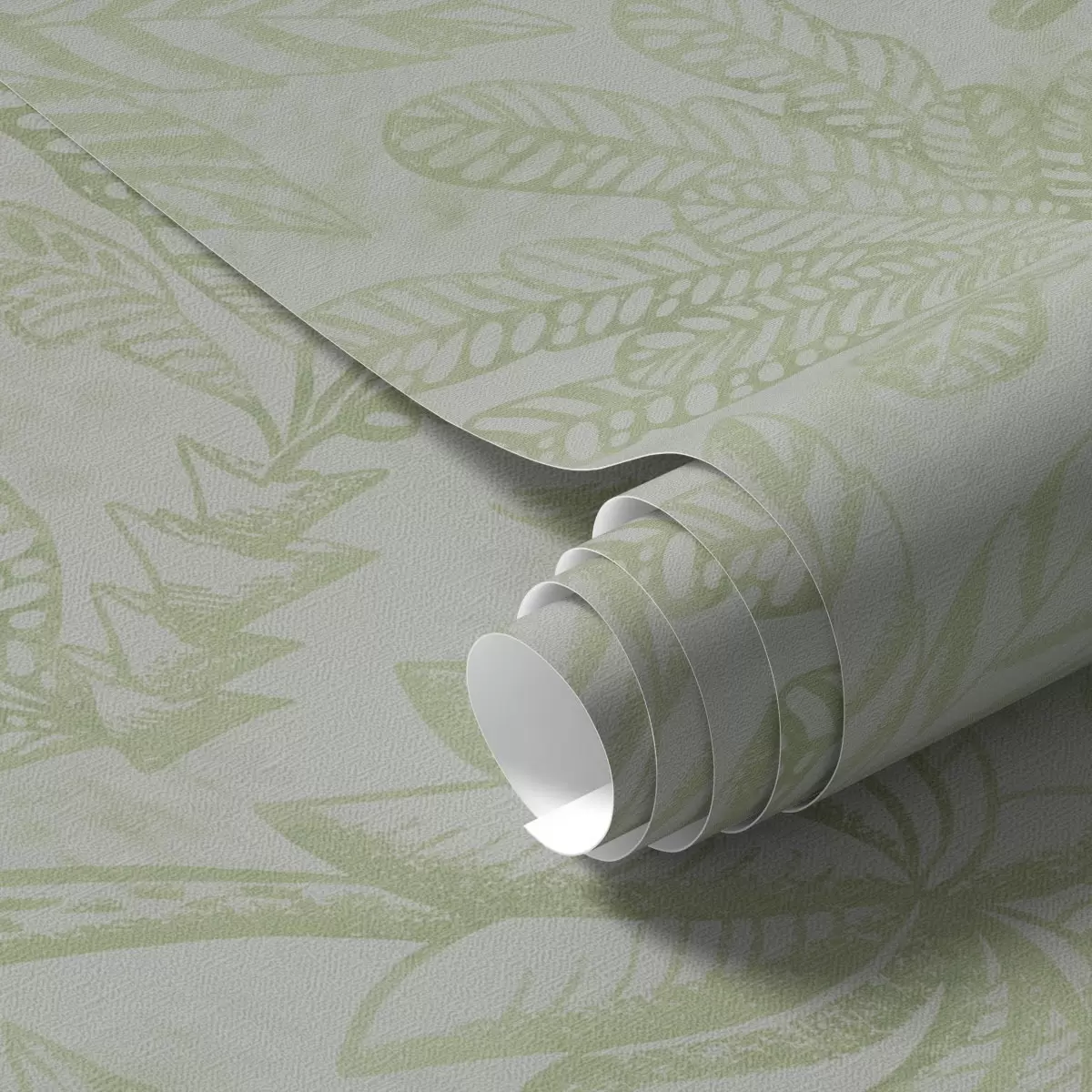 Papiers peints Feuilles tropicales esquissées dans des tons vert clair frais Nr. a01001v1
