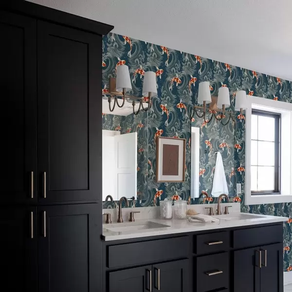 Papiers peints Des carpes koï nageant parmi les vagues spectaculaires de l'océan Nr. a01019