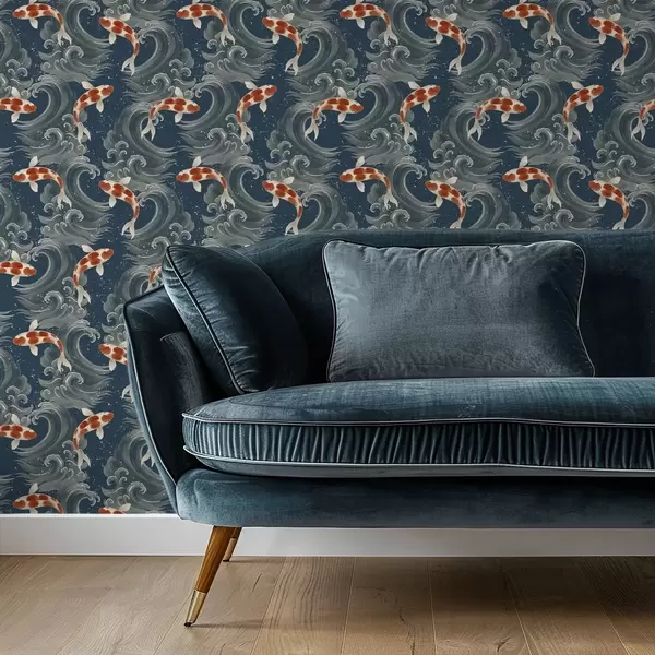 Papiers peints Des carpes koï nageant parmi les vagues spectaculaires de l'océan Nr. a01019