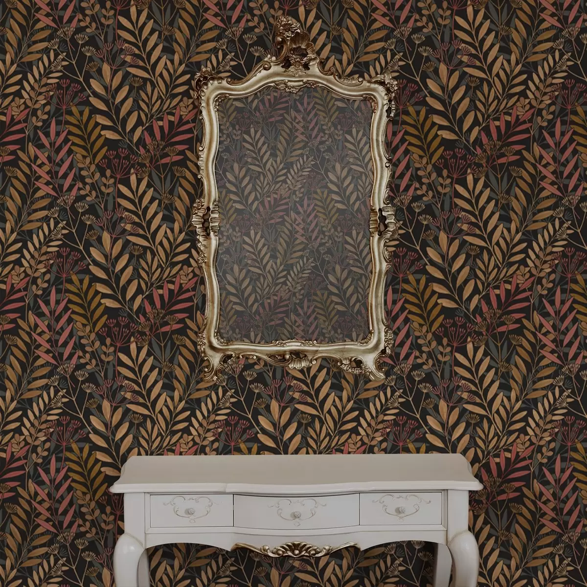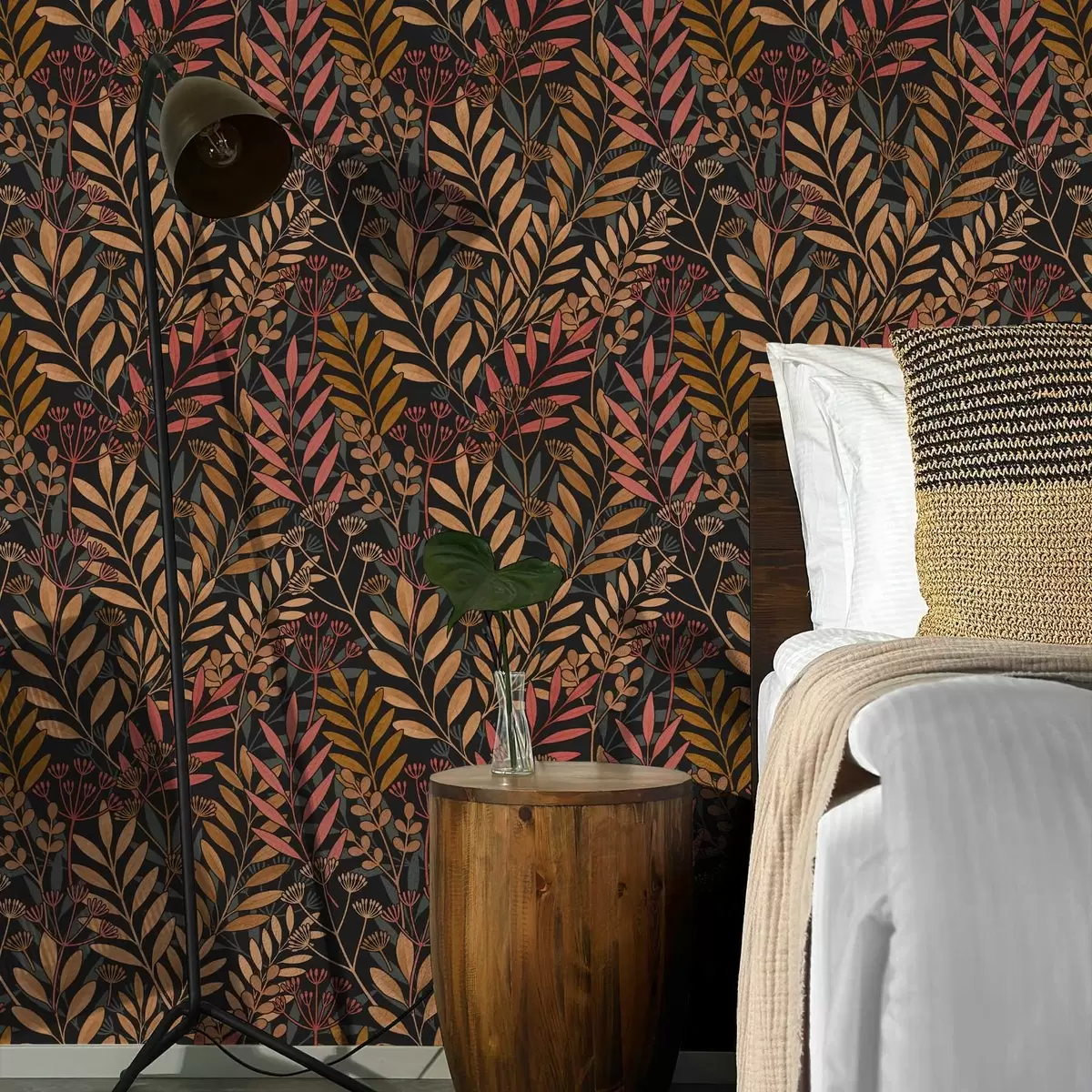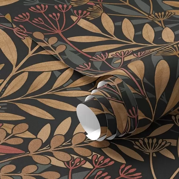 Papiers peints Prairie sombre avec feuilles stylisées et gousses Nr. a01020
