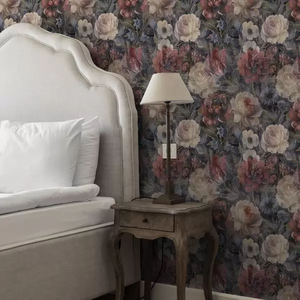 Papiers peints Bouquet pictural de grandes fleurs sur fond indigo foncé Nr. a01021