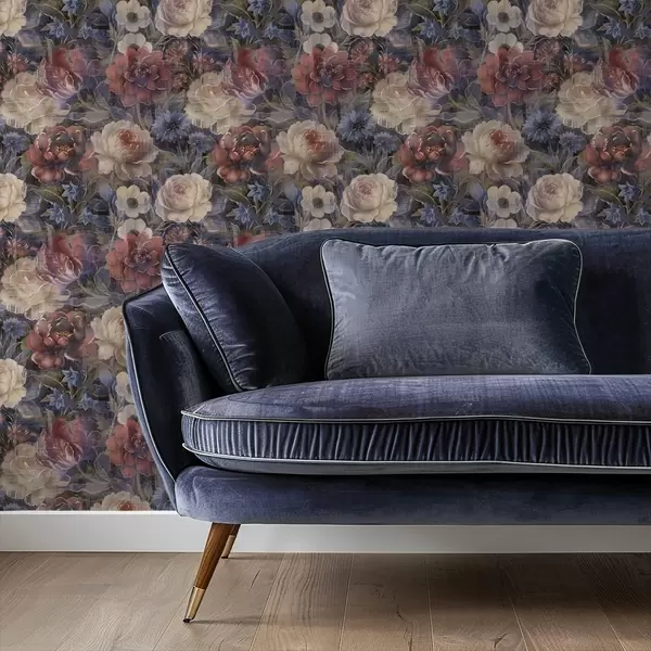 Papiers peints Bouquet pictural de grandes fleurs sur fond indigo foncé Nr. a01021