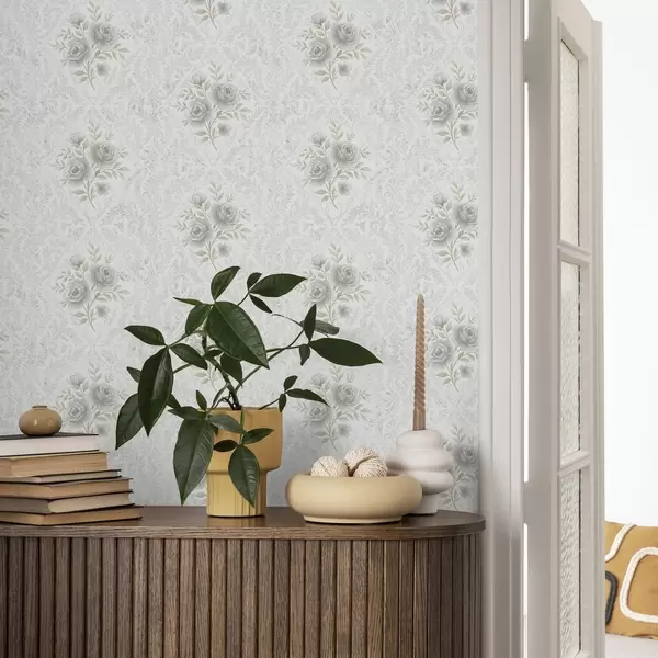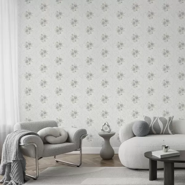 Papiers peints Motif damassé clair avec des roses grises dans des losanges doux Nr. a01024