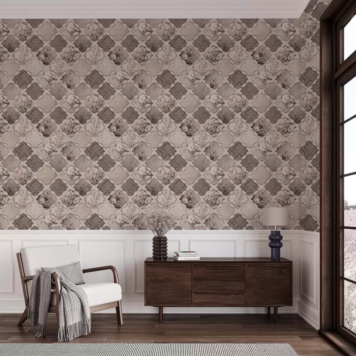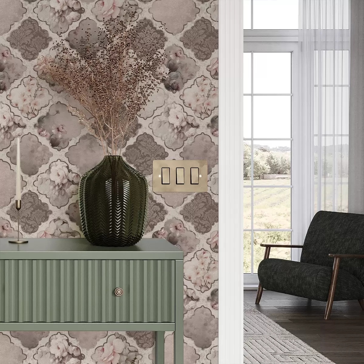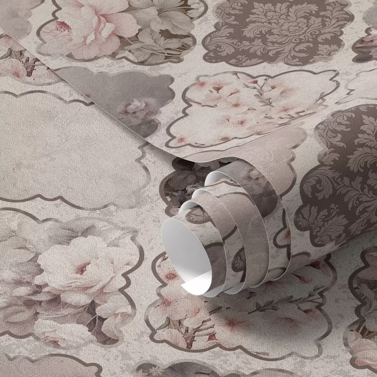 Papiers peints Patchwork romantique de médaillons floraux dans des tons poussiéreux Nr. a01027