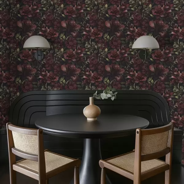 Papiers peints Riches fleurs bordeaux sur fond sombre Nr. a01032