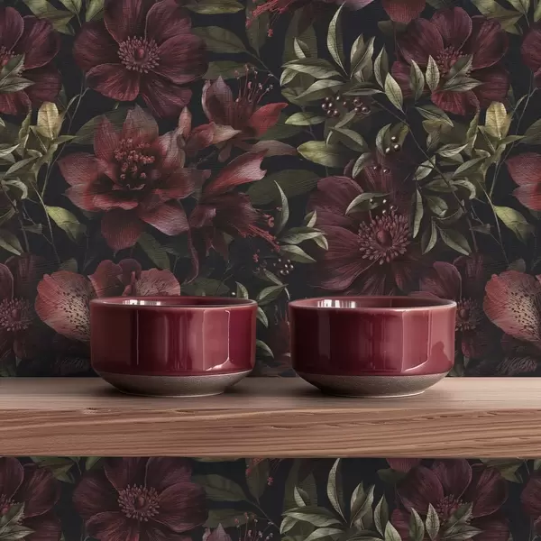 Papiers peints Riches fleurs bordeaux sur fond sombre Nr. a01032