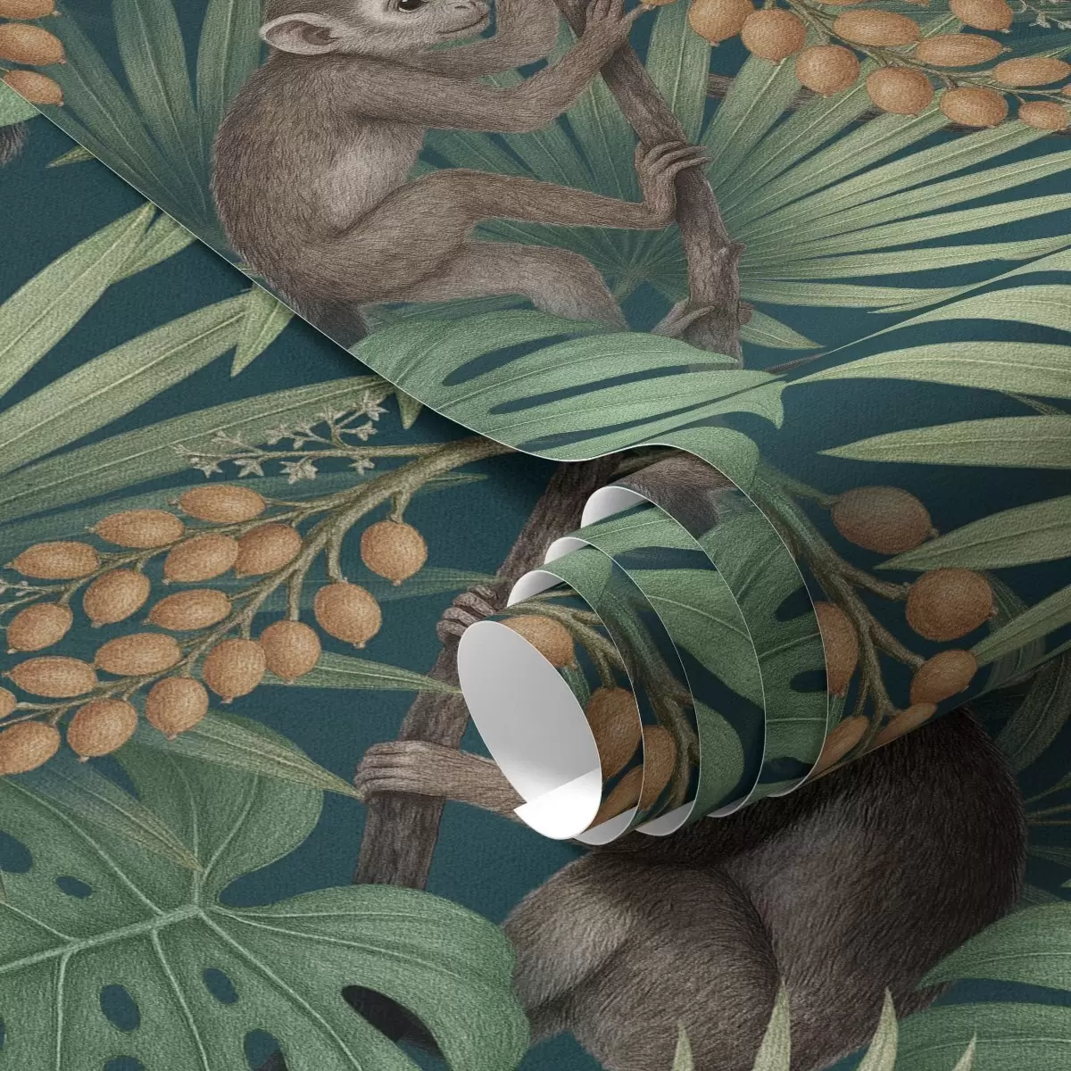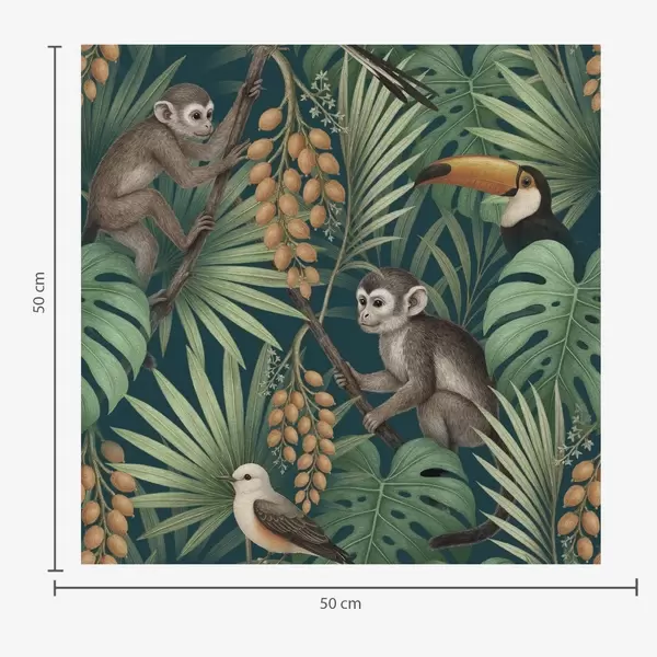 Papiers peints Singes et oiseaux tropicaux dans la végétation dense de la jungle Nr. a01037
