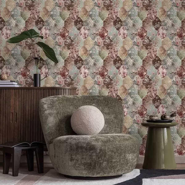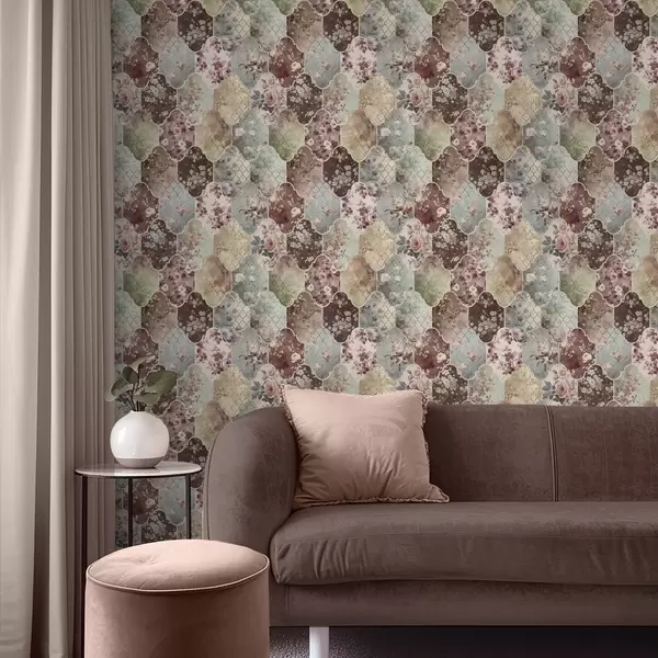 Papiers peints Mosaïque de panneaux floraux et de carreaux à motifs usés Nr. a01038