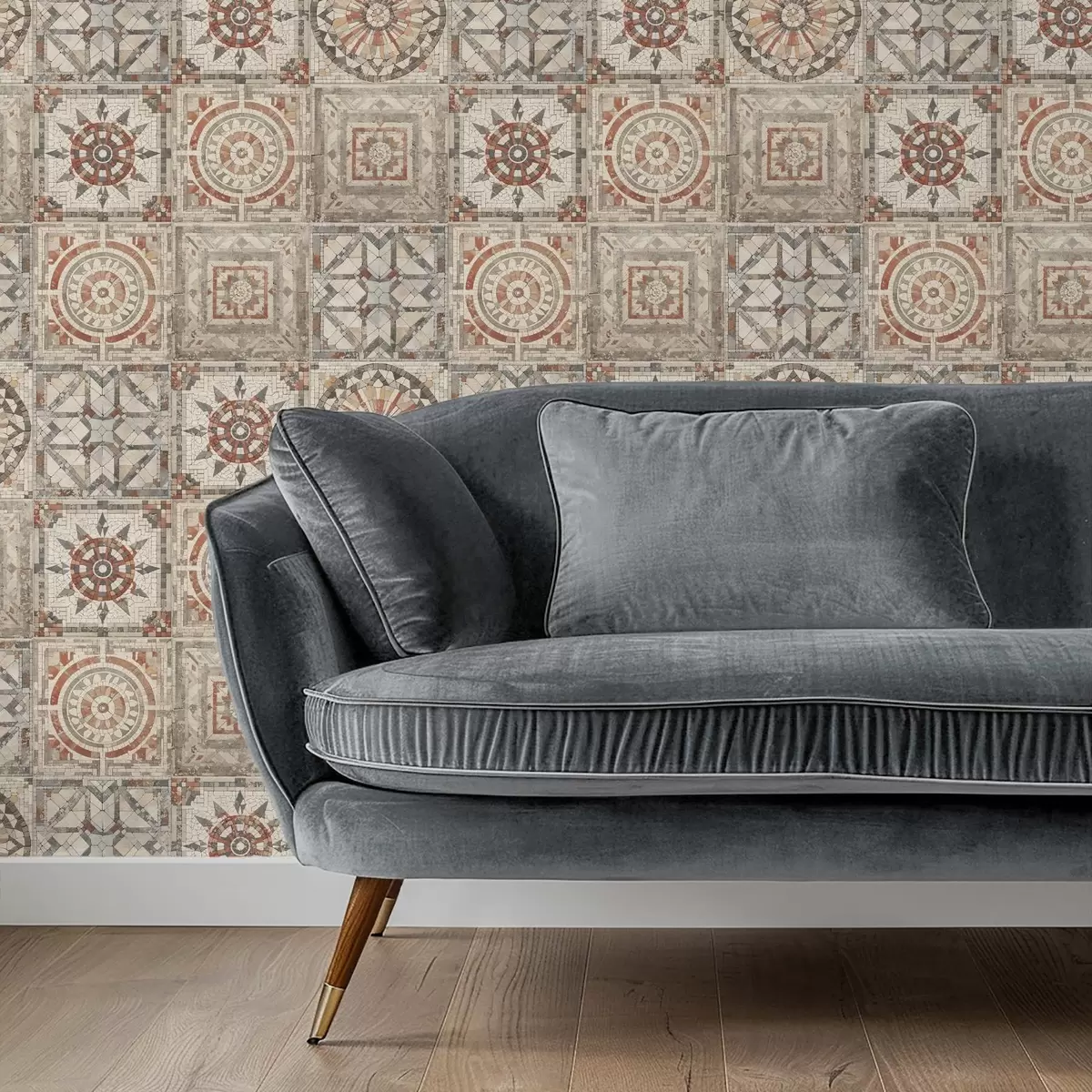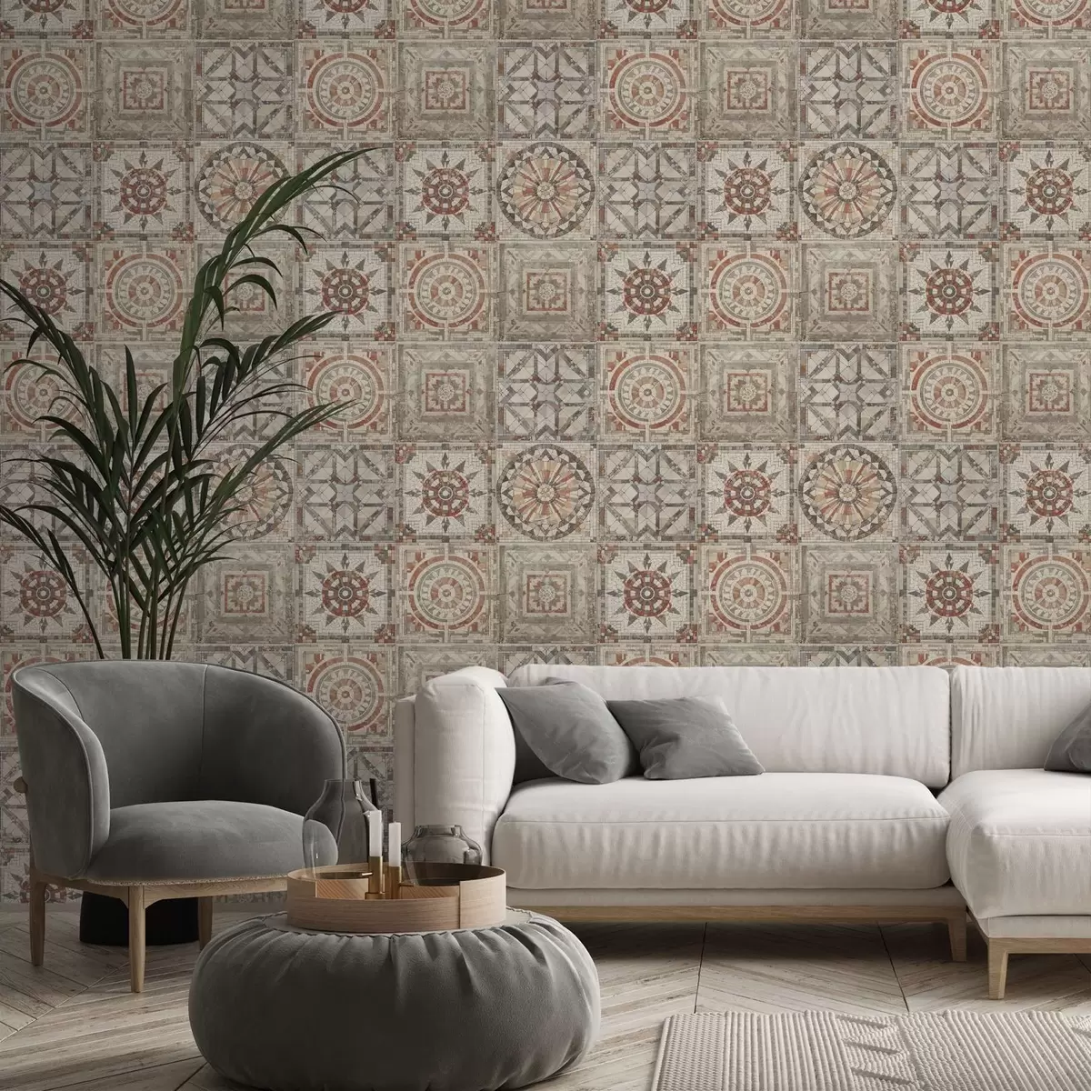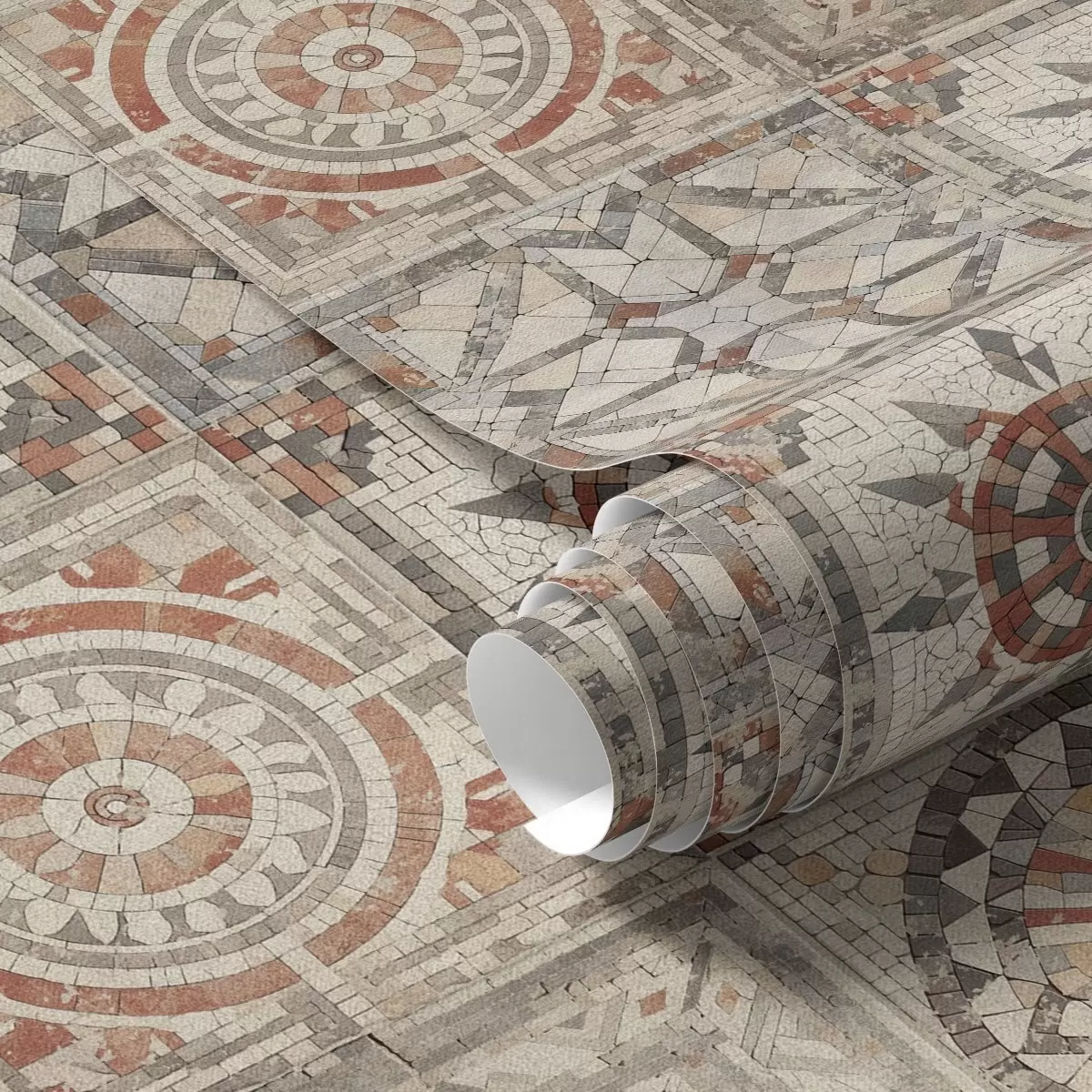 Papiers peints Médaillons anciens en mosaïque de pierre aux détails usés Nr. a01042
