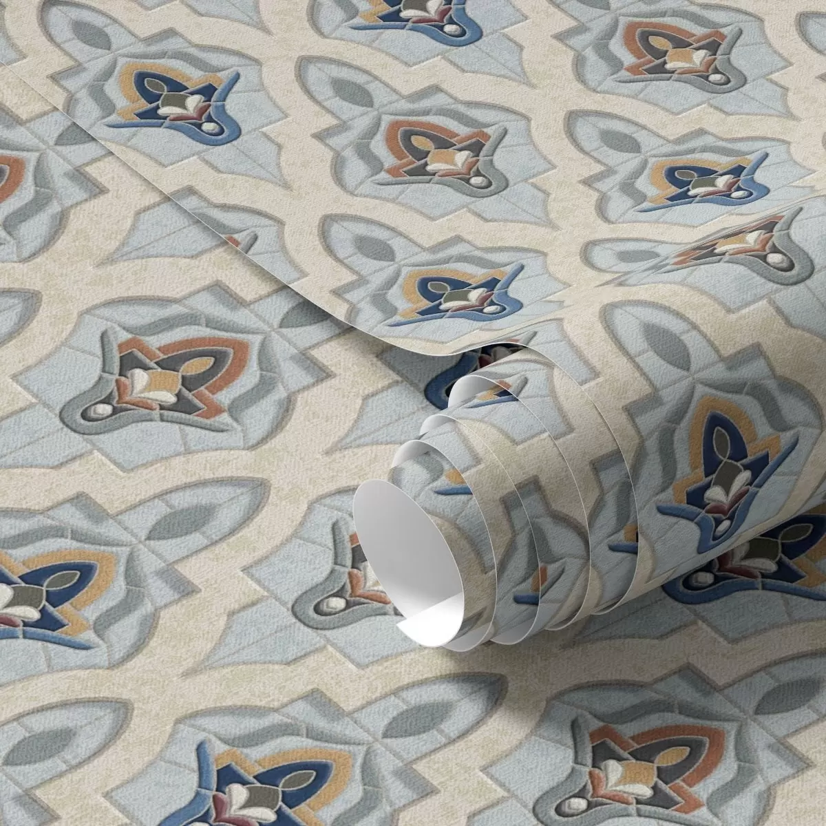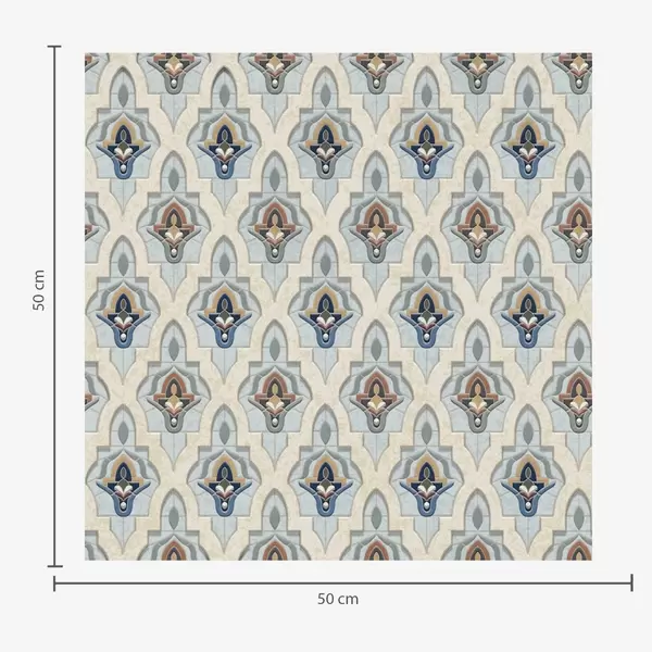 Papiers peints Motif oriental composé de petits carreaux dans une palette bleu sable Nr. a01044