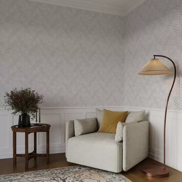 Papier peint Motif nid d'abeille clair avec de fins contours gris a01061
