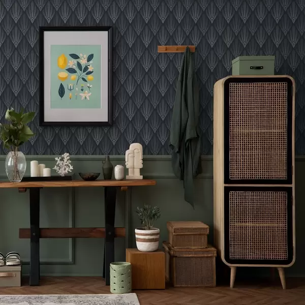 Papiers peints Art déco bleu-gris raffiné avec des formes en éventail Nr. a01064v3