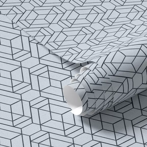 Papiers peints Motif géométrique bleu clair en forme de cubes Nr. a01066