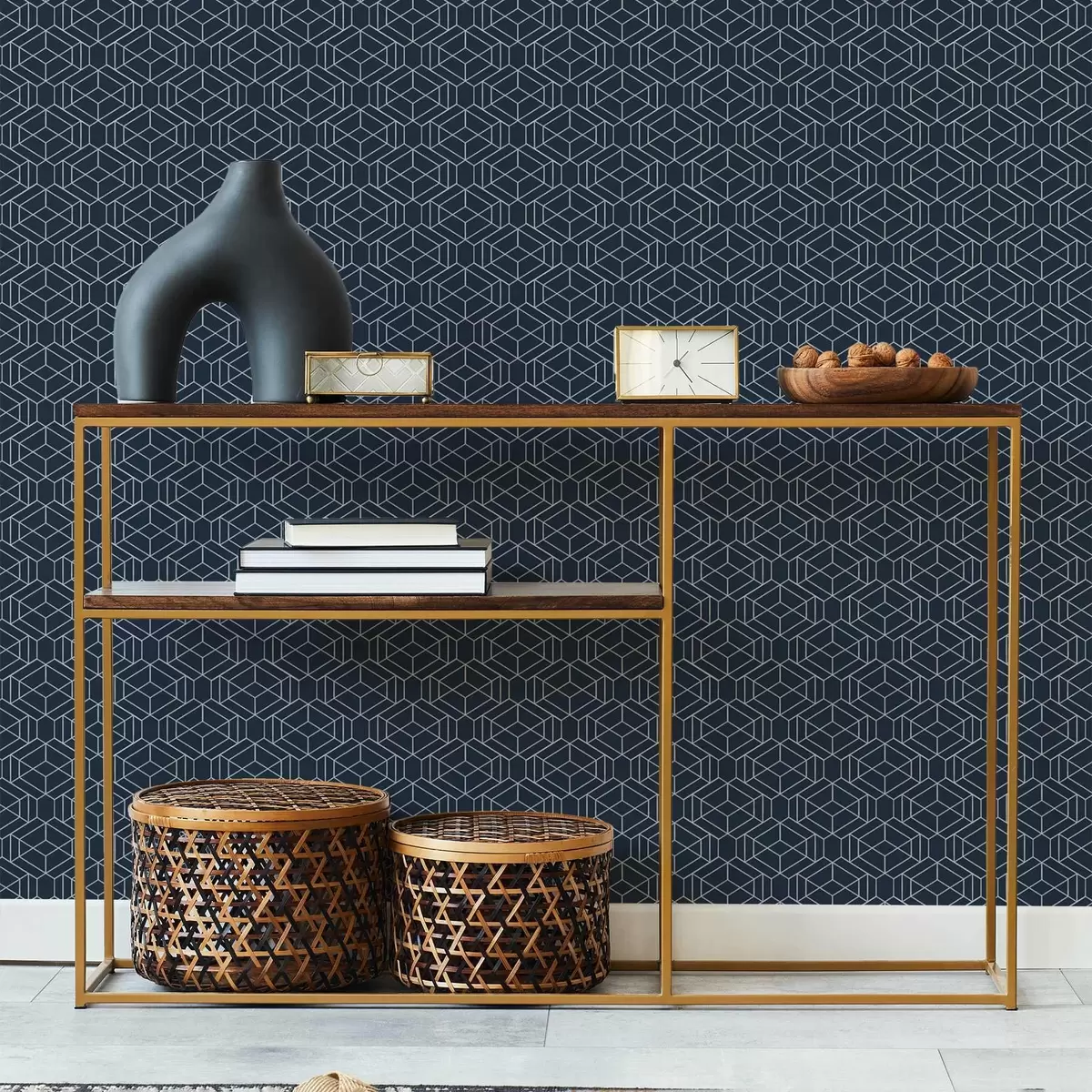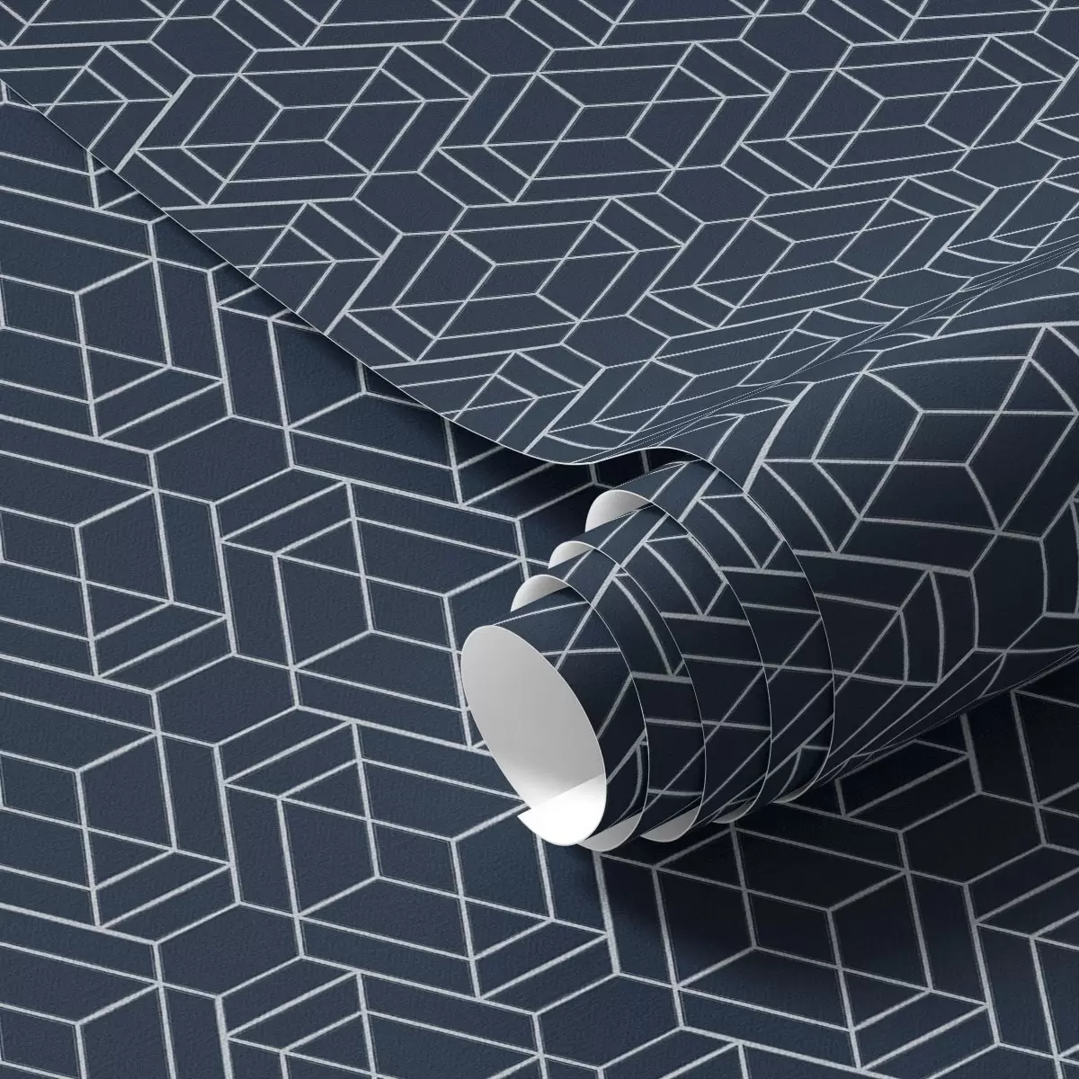 Papiers peints Lattice géométrique bleu marine foncé composé de cubes Nr. a01066v1