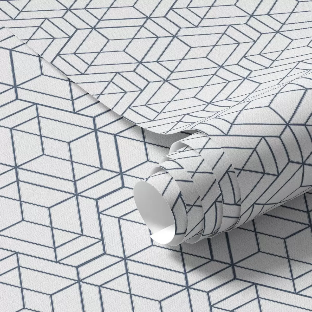 Papiers peints Fond blanc avec cubes géométriques tridimensionnels bleus Nr. a01067