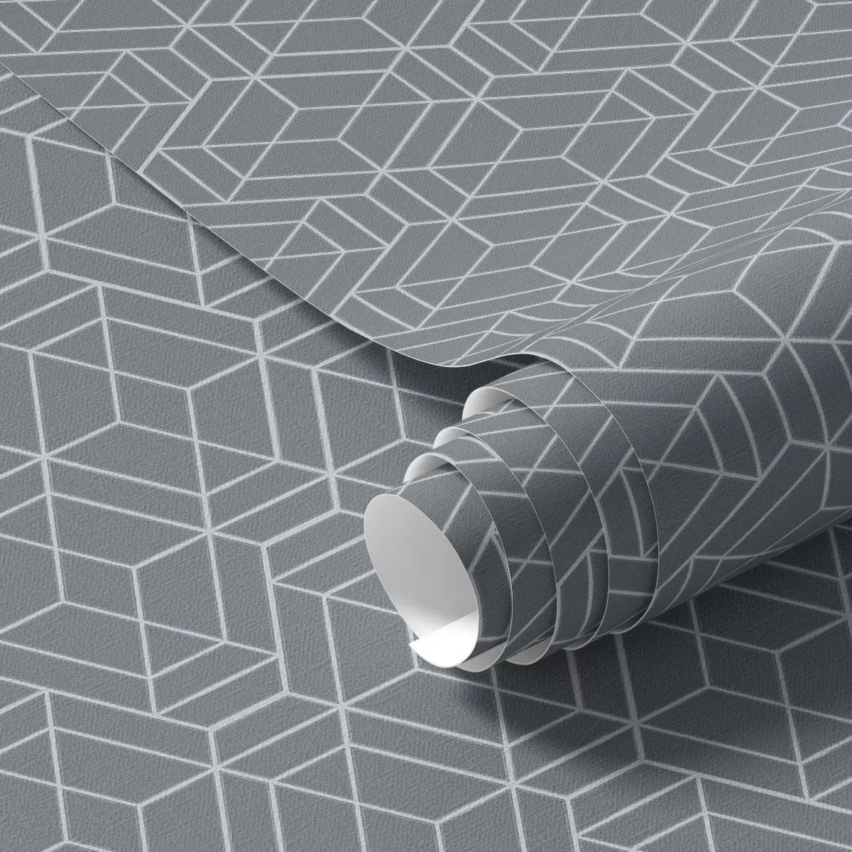 Papiers peints Fond gris avec des cubes tridimensionnels blancs disposés en grille Nr. a01067v2