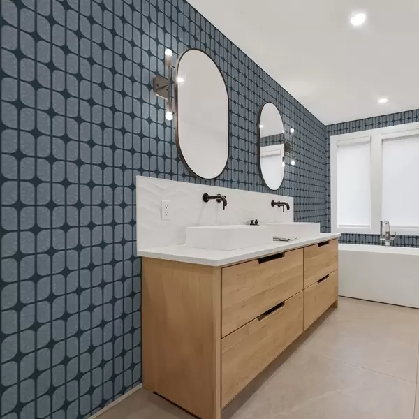 Papiers peints Fond bleu foncé avec mosaïque grise de carreaux arrondis Nr. a01068v1
