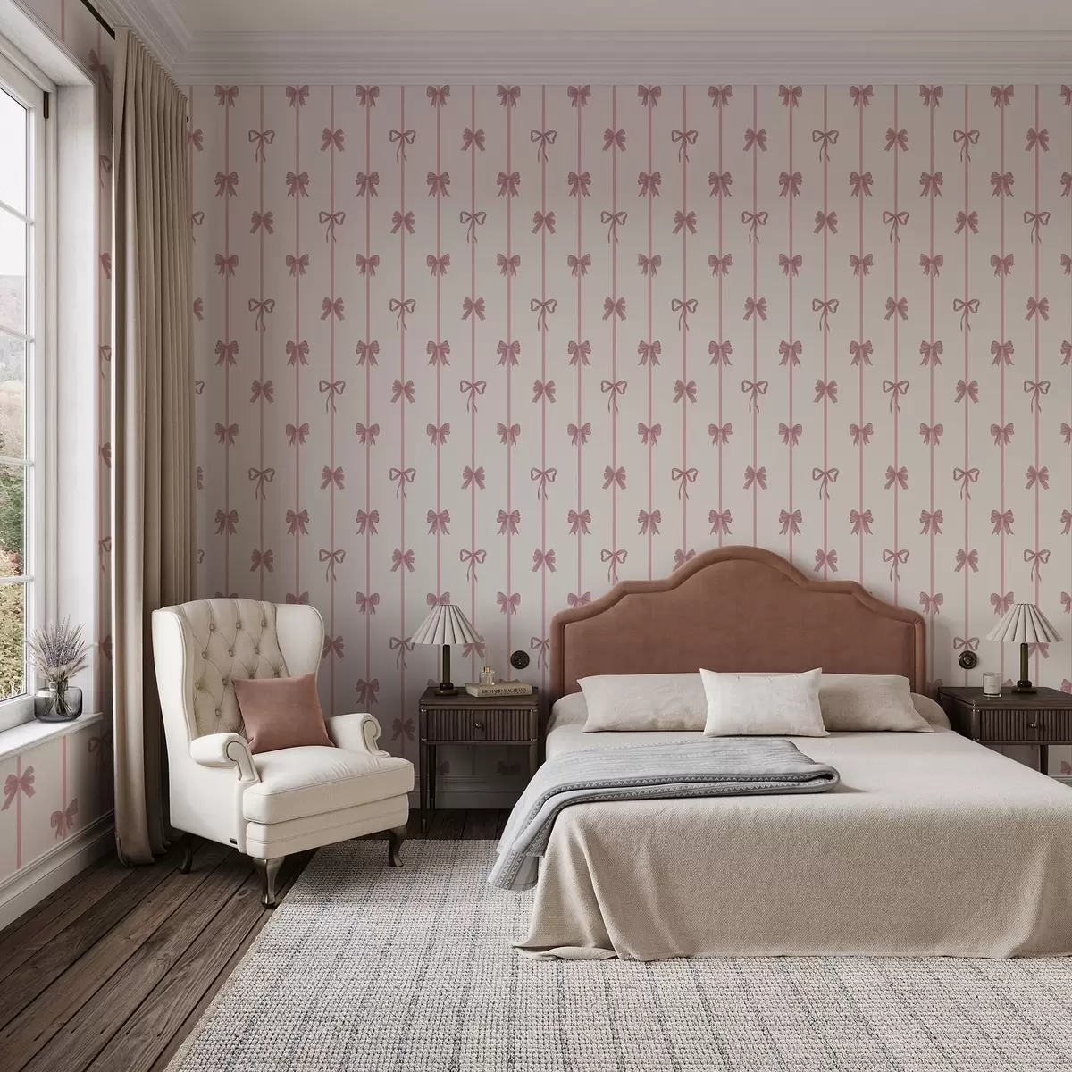 Papiers peints Des nœuds roses avec des rubans sur un fond clair Nr. a01074