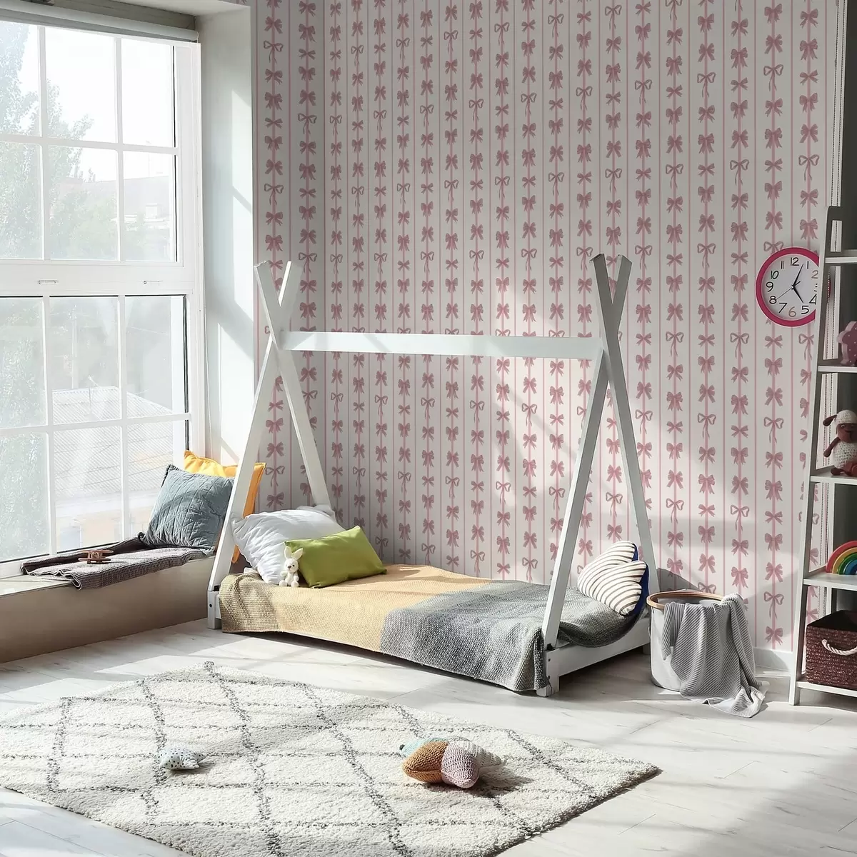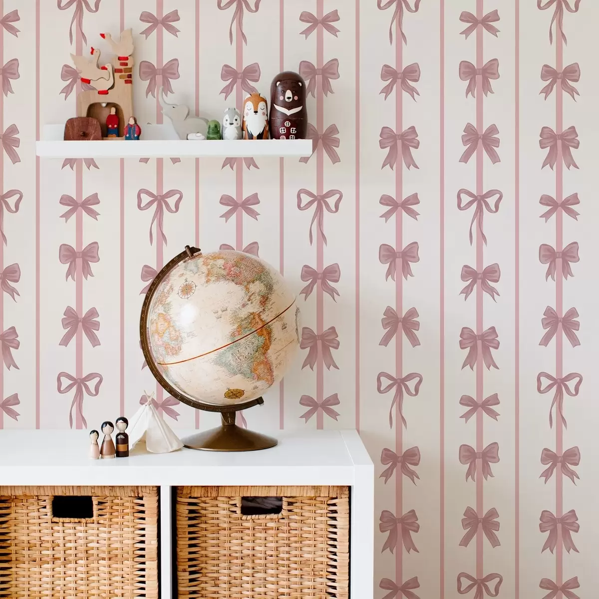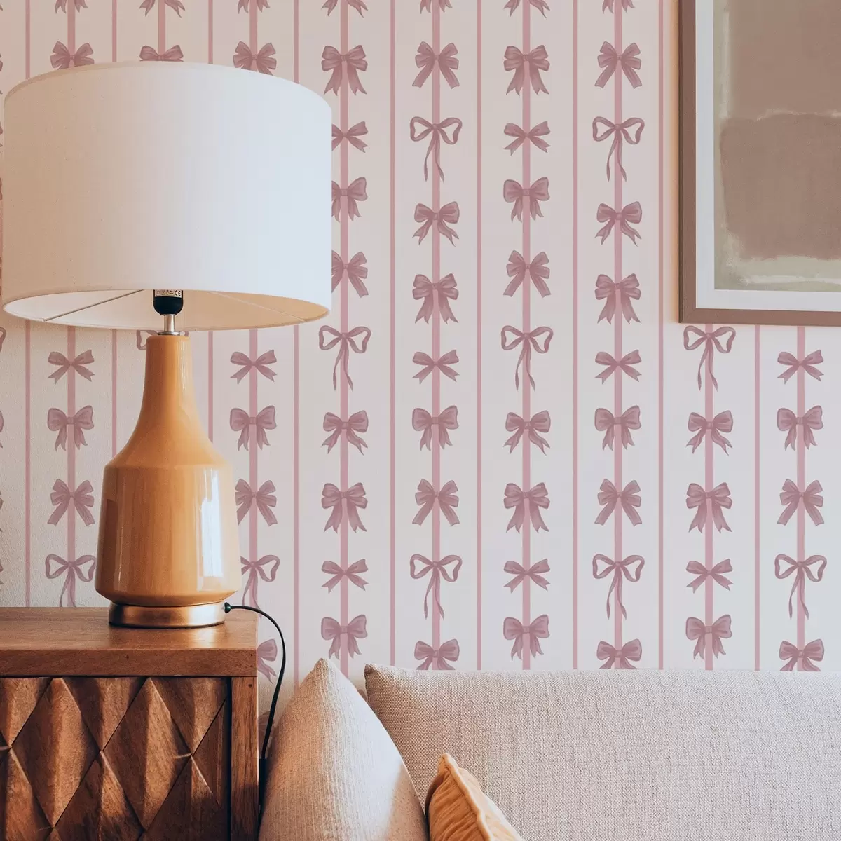 Papiers peints Des nœuds roses sur fond clair, disposés en rayures verticales Nr. a01075