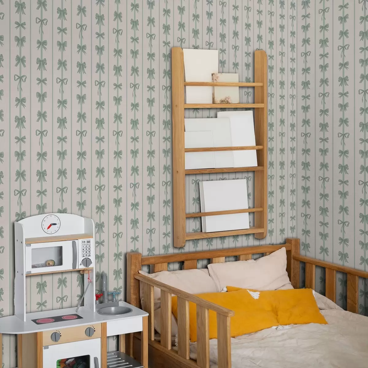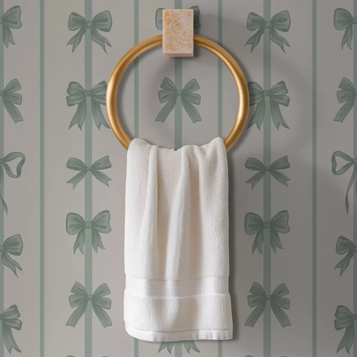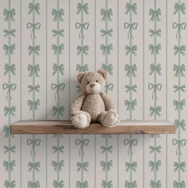 Papiers peints Des nœuds verts rayés sur fond beige Nr. a01075v1