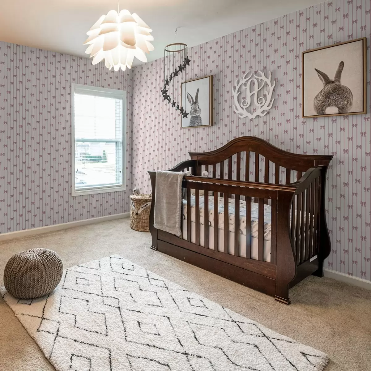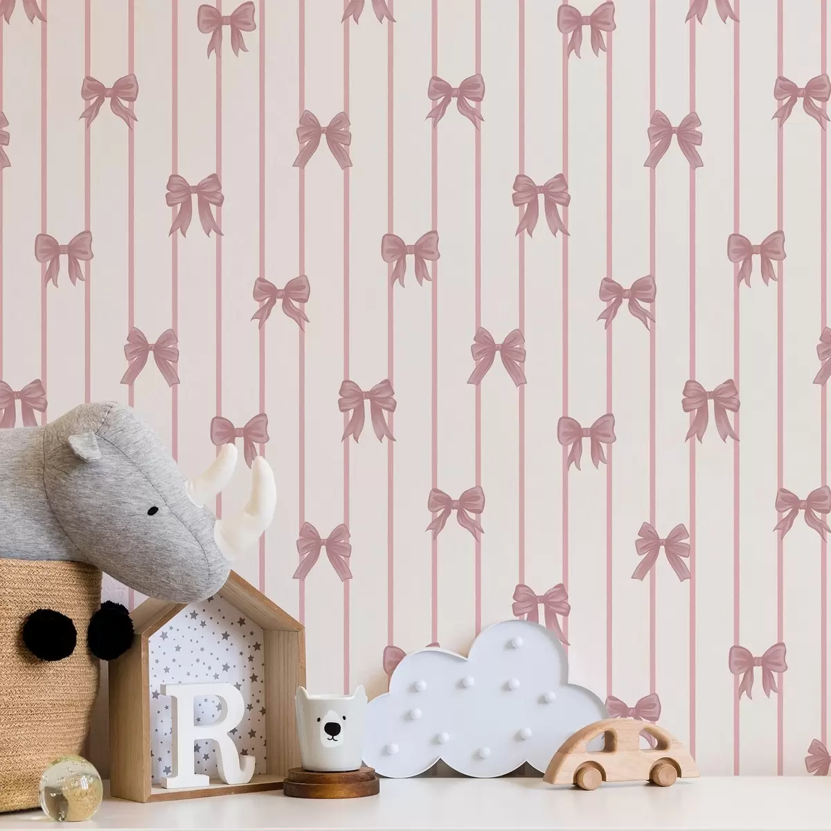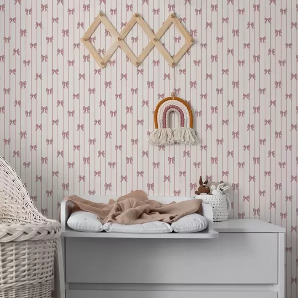 Papiers peints Petits nœuds roses sur fond à rayures verticales Nr. a01076