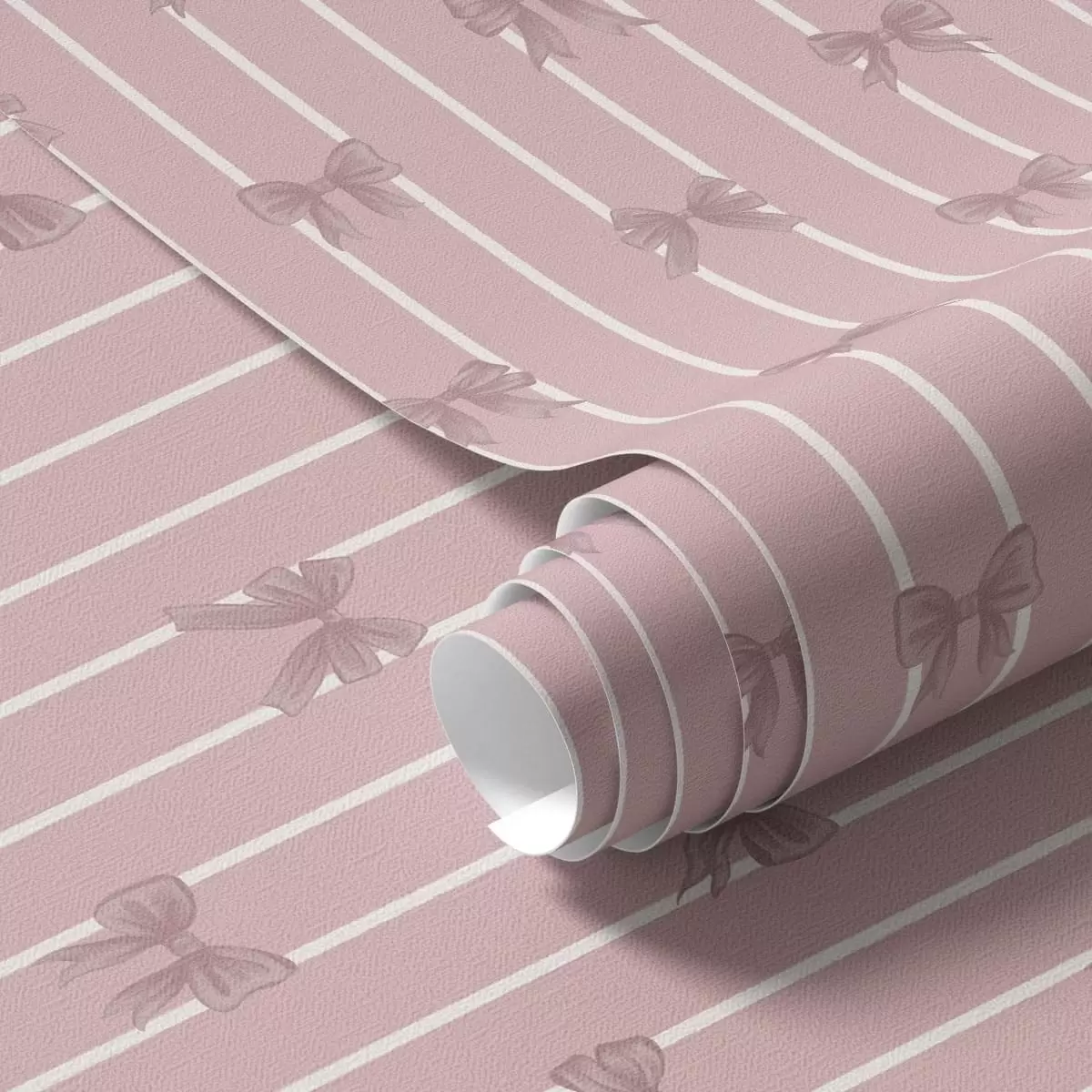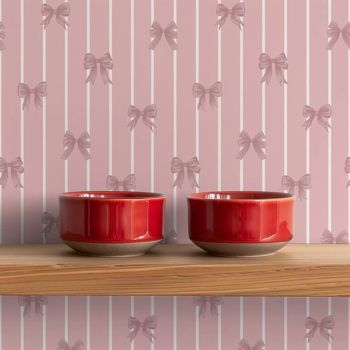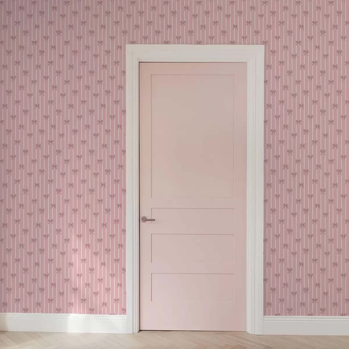 Papiers peints De petits nœuds roses sur un fond rayé rose Nr. a01076v1