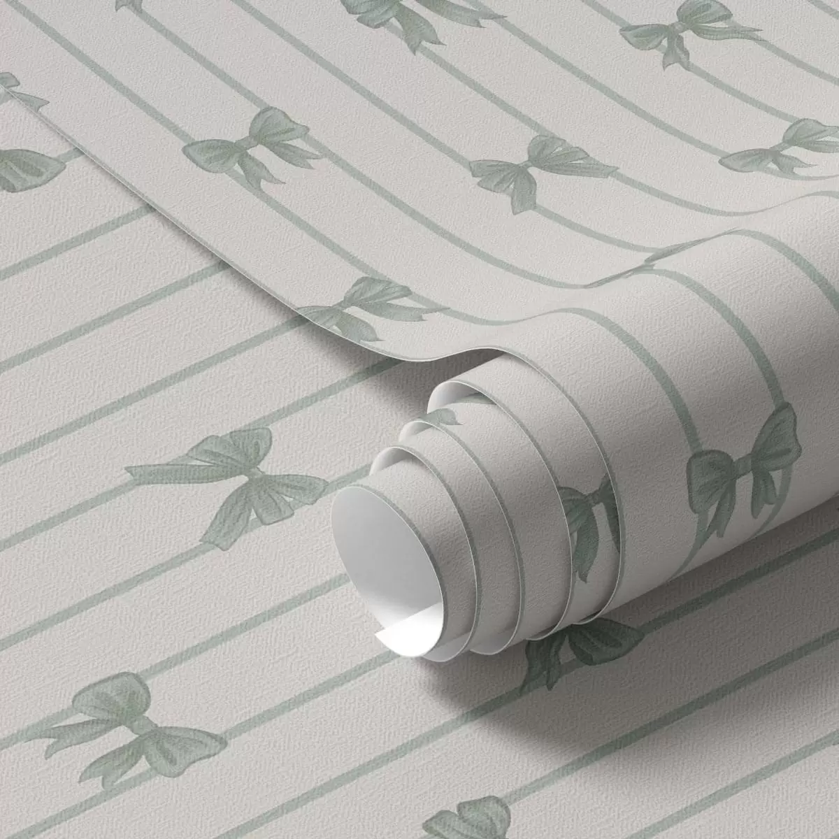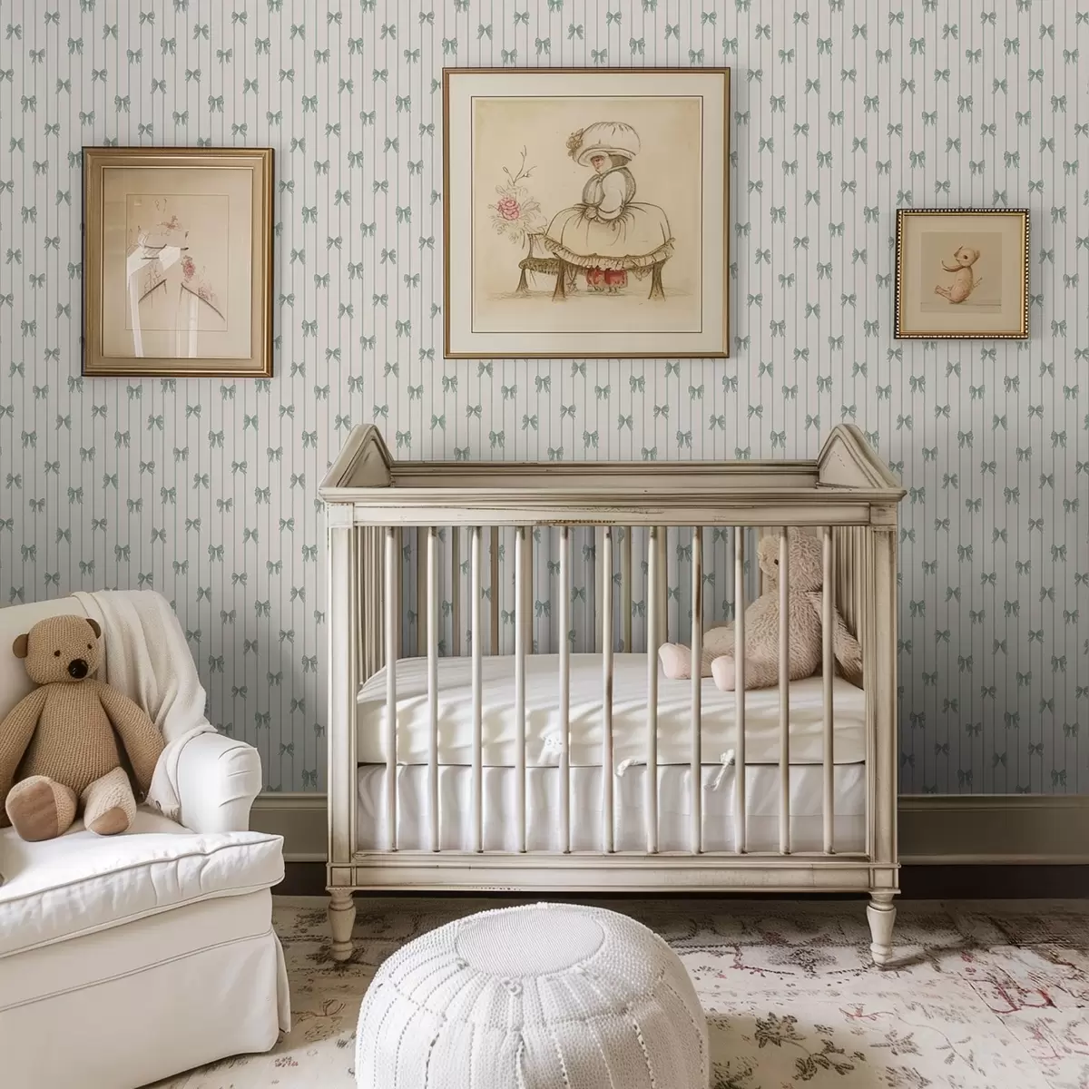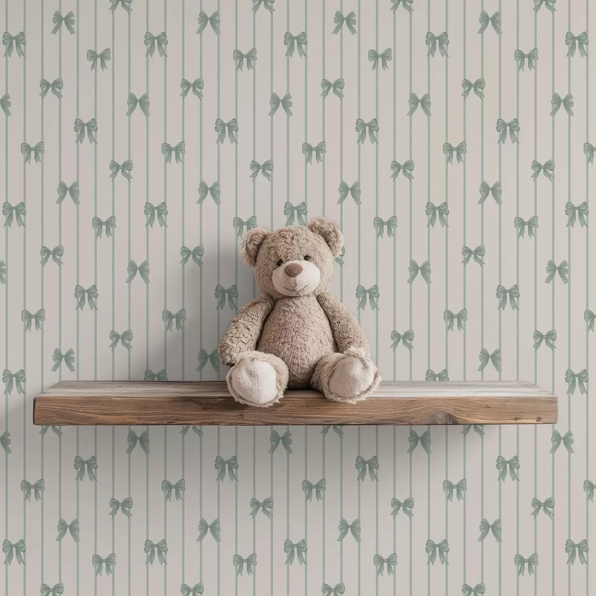 Papiers peints Petits nœuds verts rayés sur fond beige Nr. a01076v2