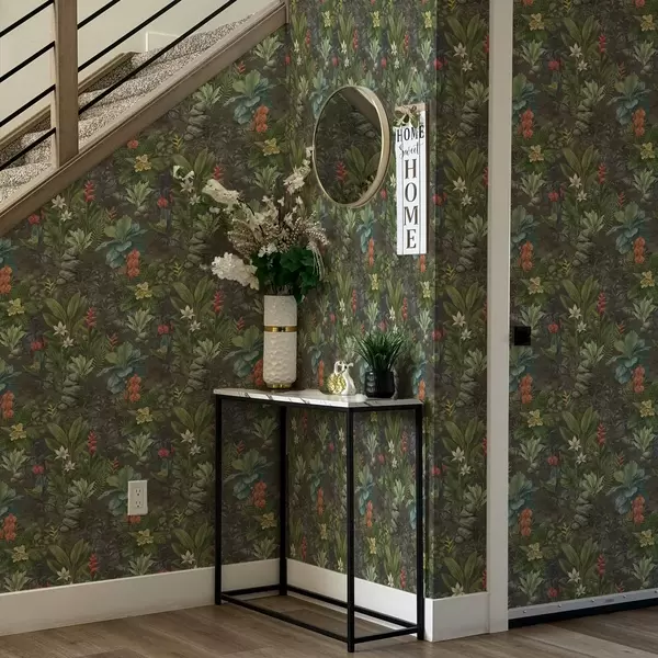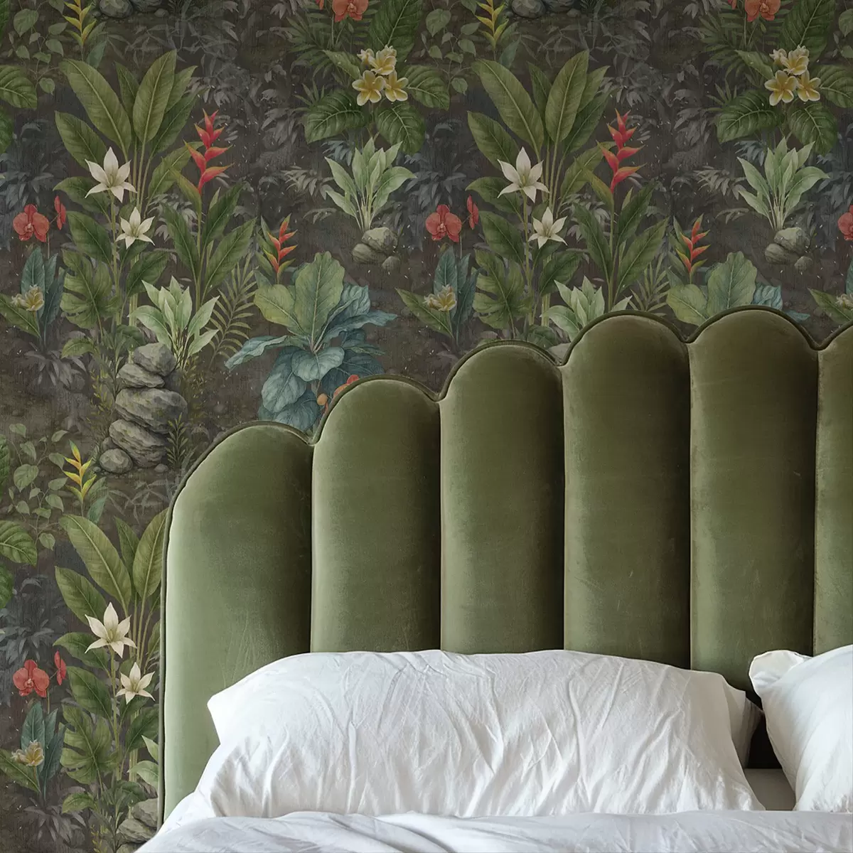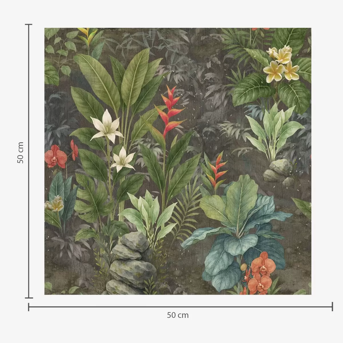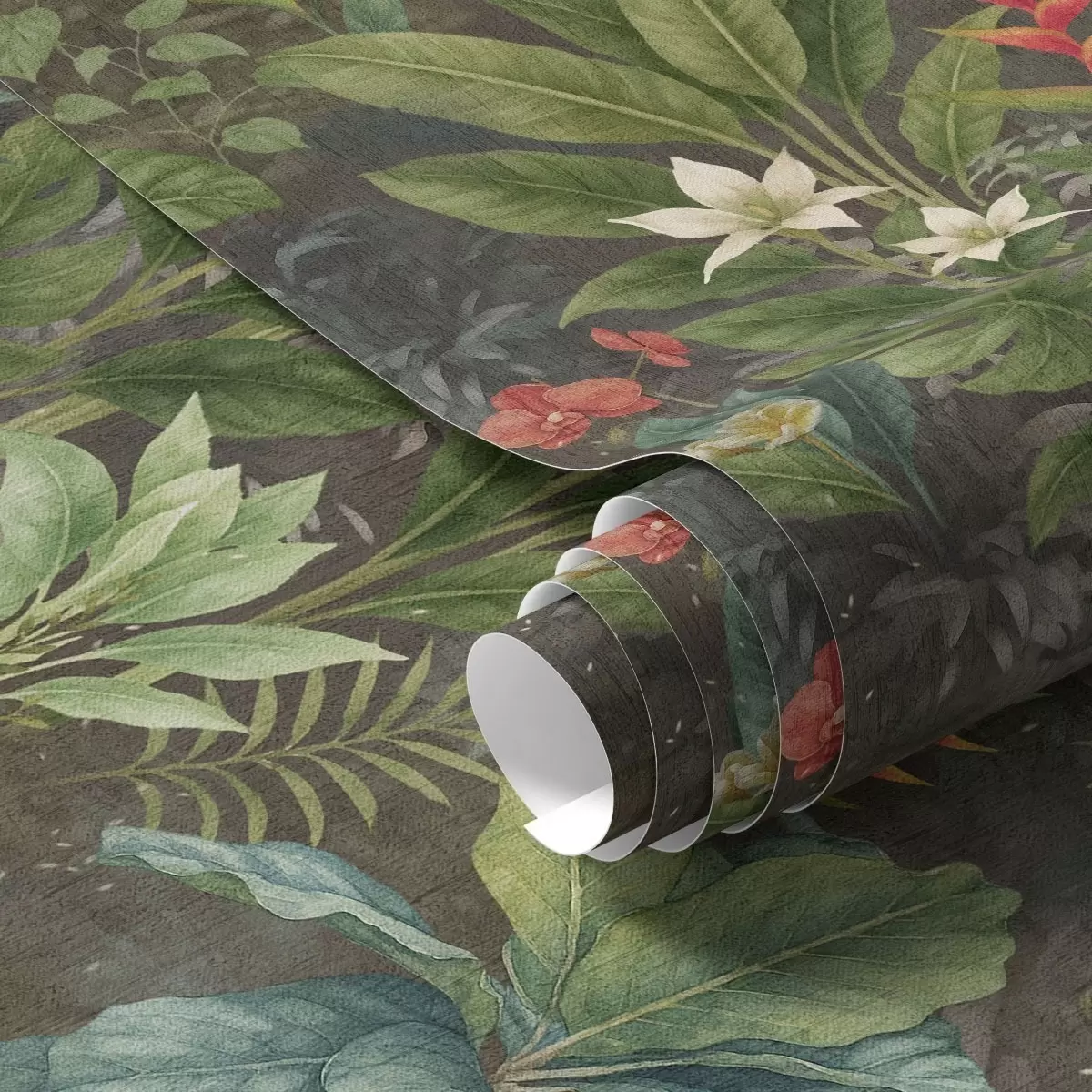 Papiers peints Jardin tropical sombre avec des fleurs et un feuillage éclatants Nr. a01079