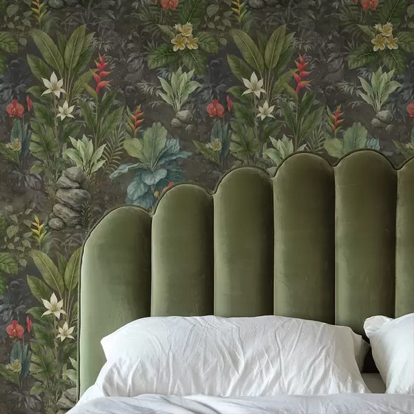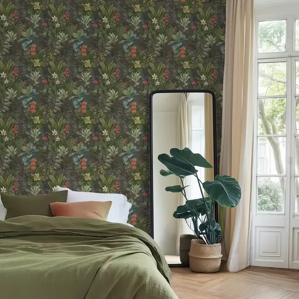 Papiers peints Jardin tropical sombre avec des fleurs et un feuillage éclatants Nr. a01079