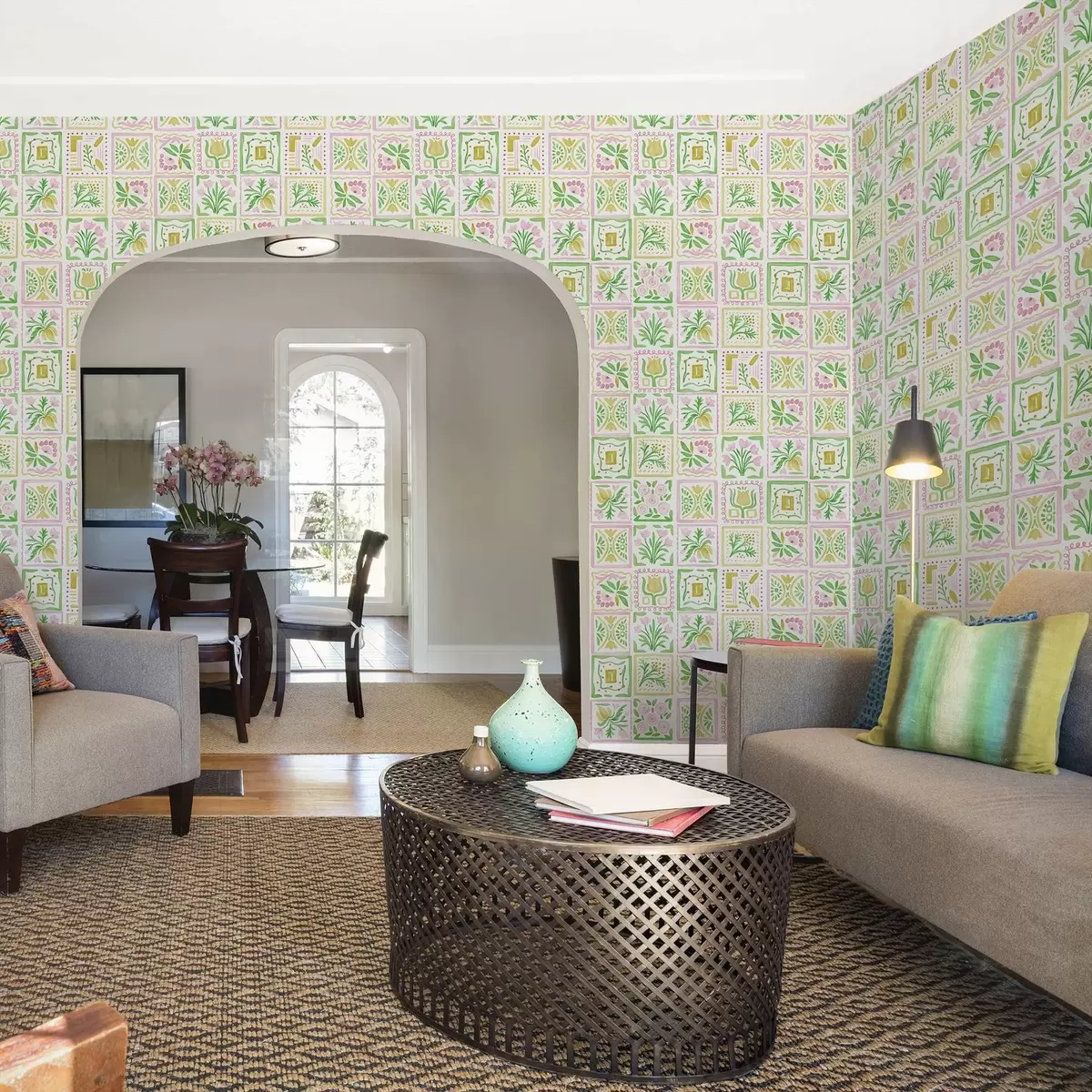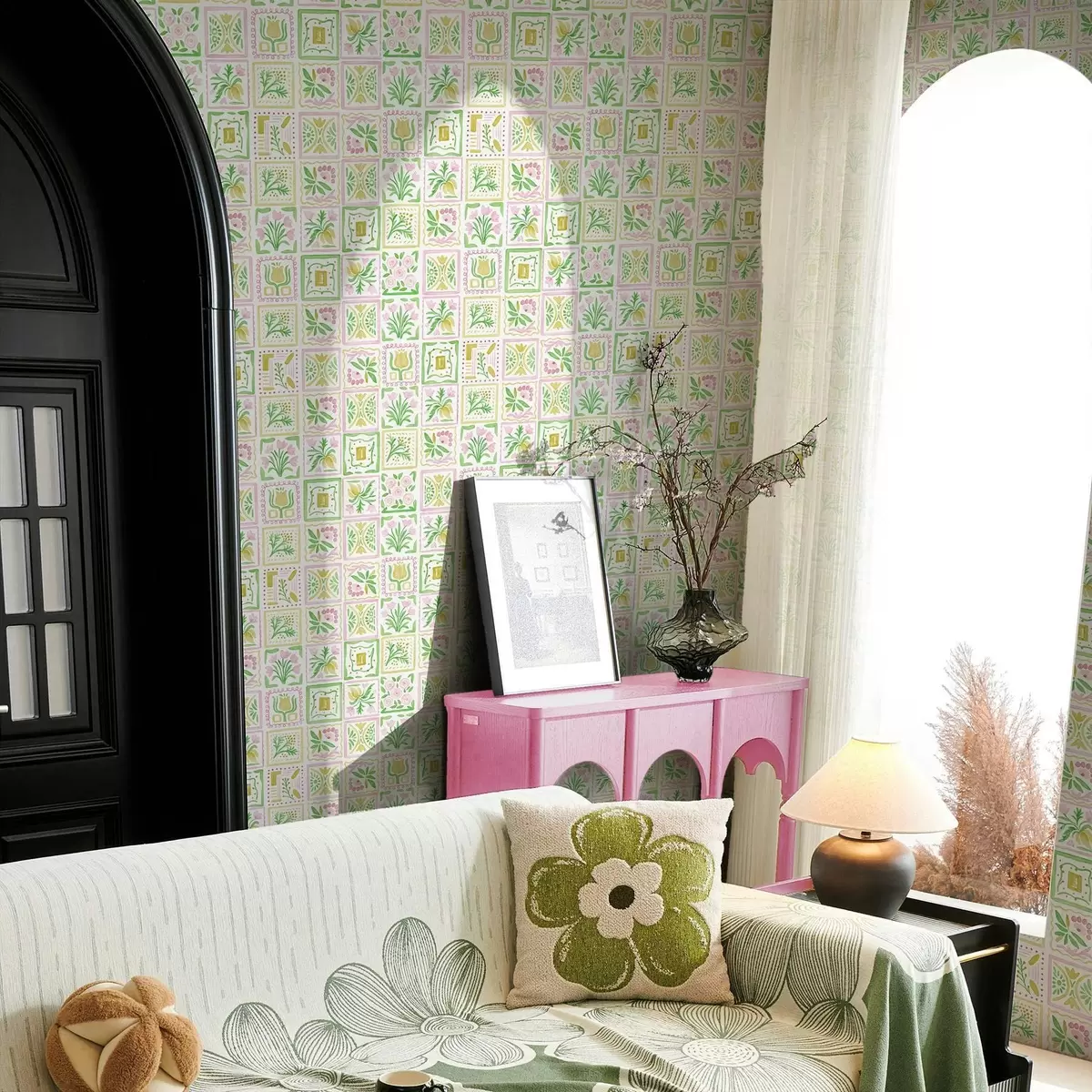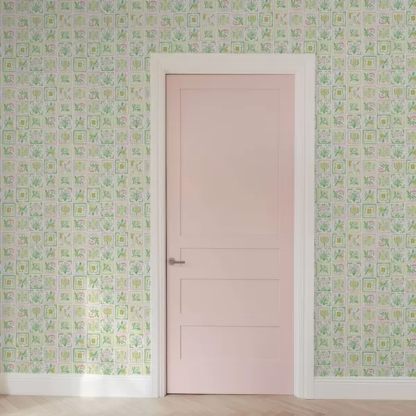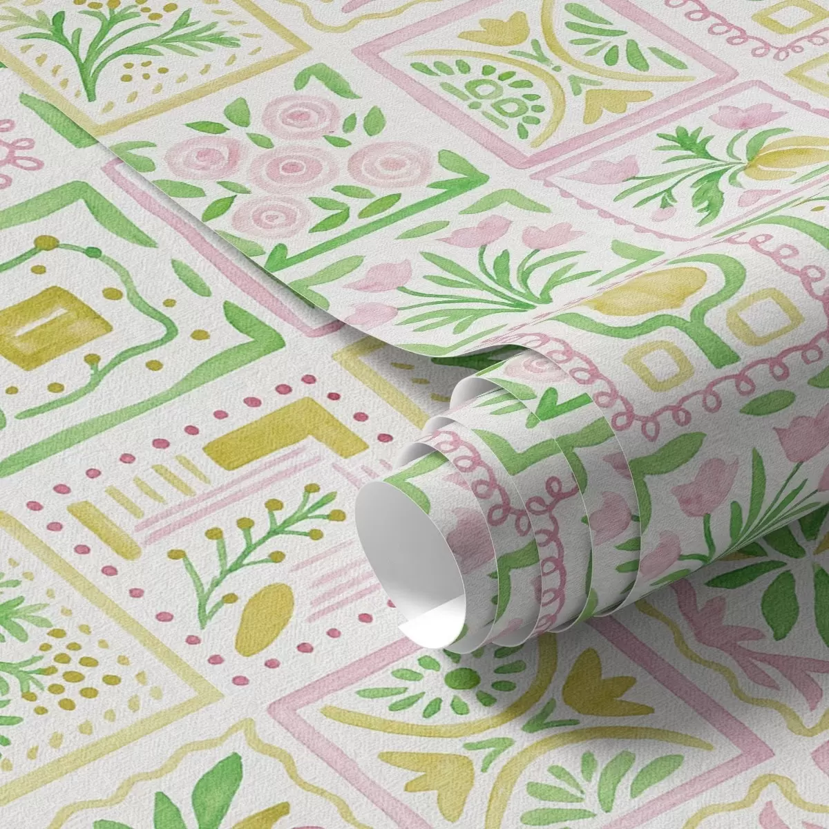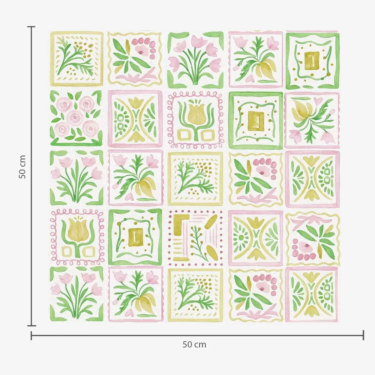 Papiers peints Carrés aquarellés avec des branches roses et vertes Nr. a01082