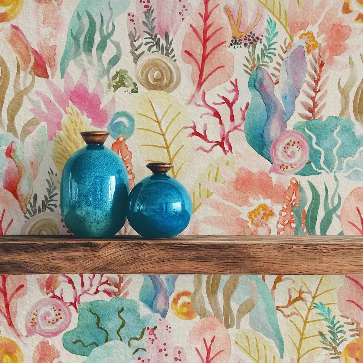 Papiers peints Jardin sous-marin aquarellé avec coraux et algues Nr. a01083