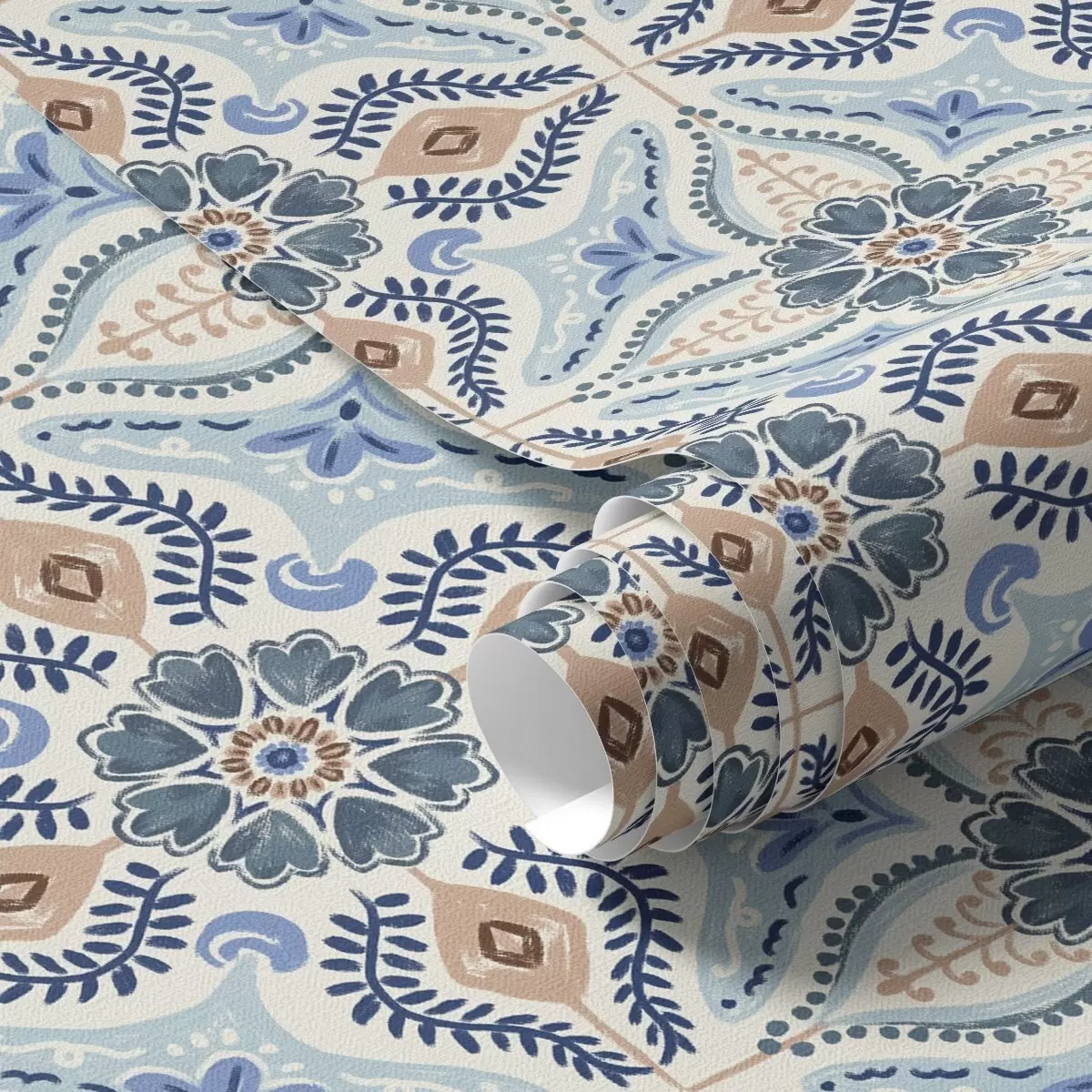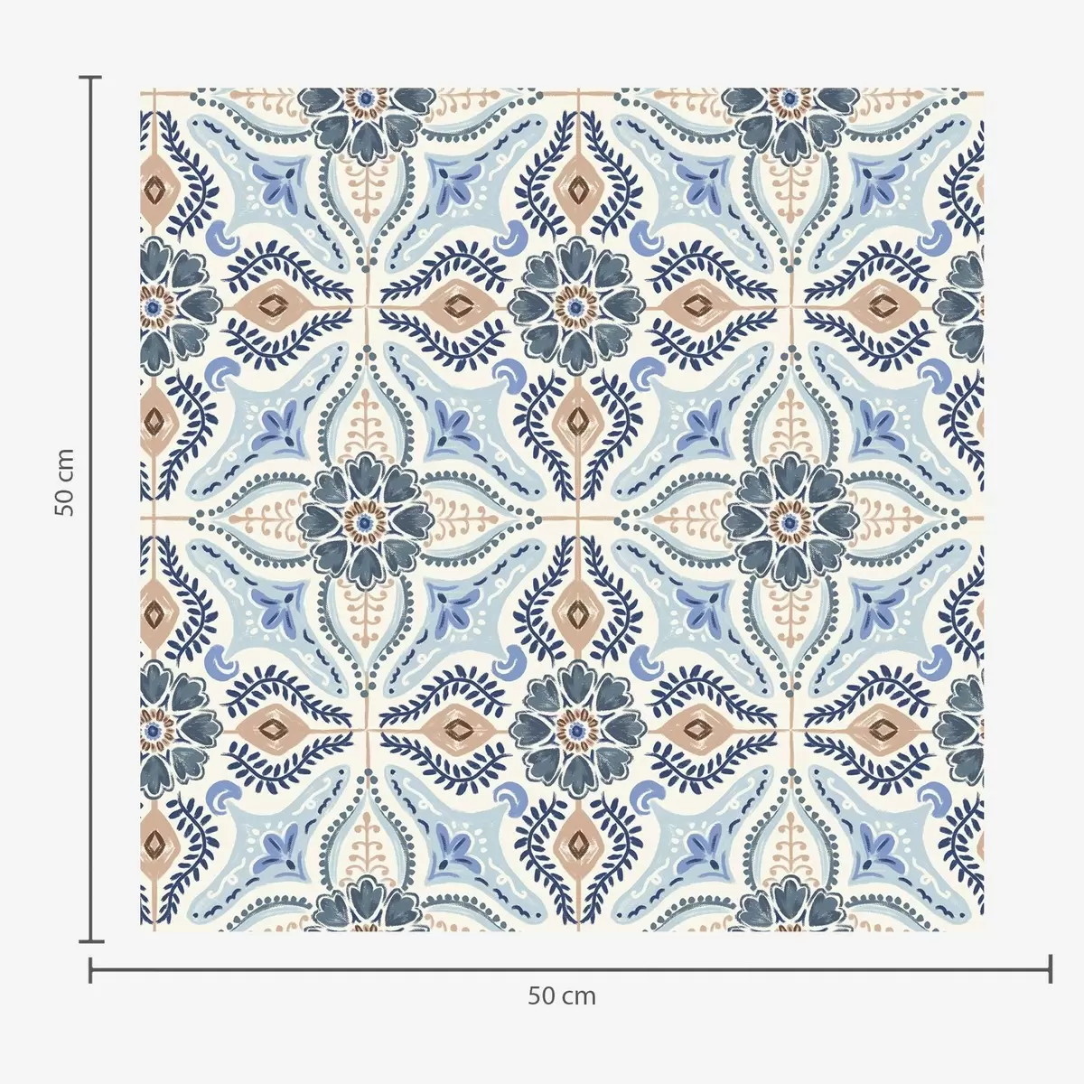 Papiers peints Ornement bleu-beige de style carrelage peint à l'aquarelle Nr. a01085
