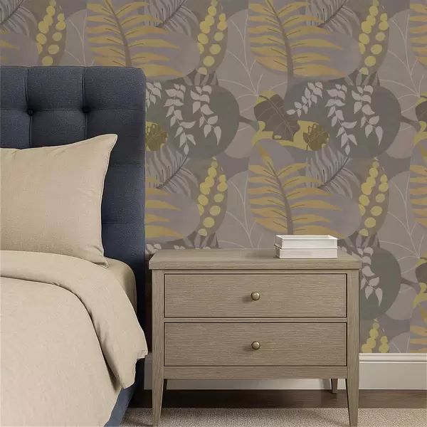 Papiers peints Feuilles abstraites dans des tons gris et jaunes Nr. a01112