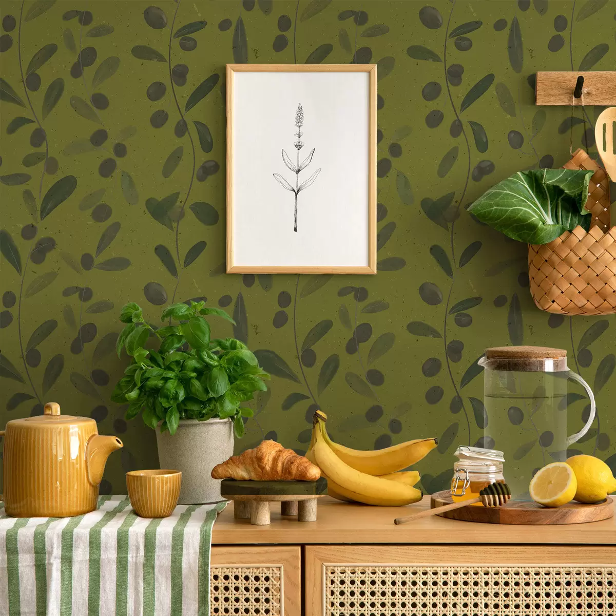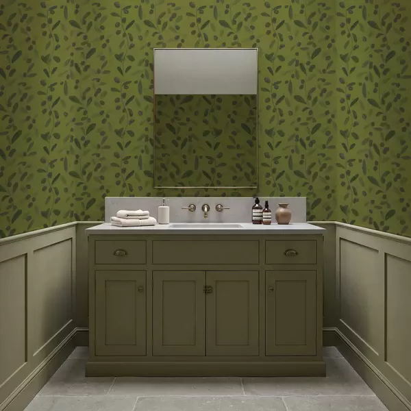 Papiers peints Branches vertes avec feuilles et baies sur olivier Nr. a01113