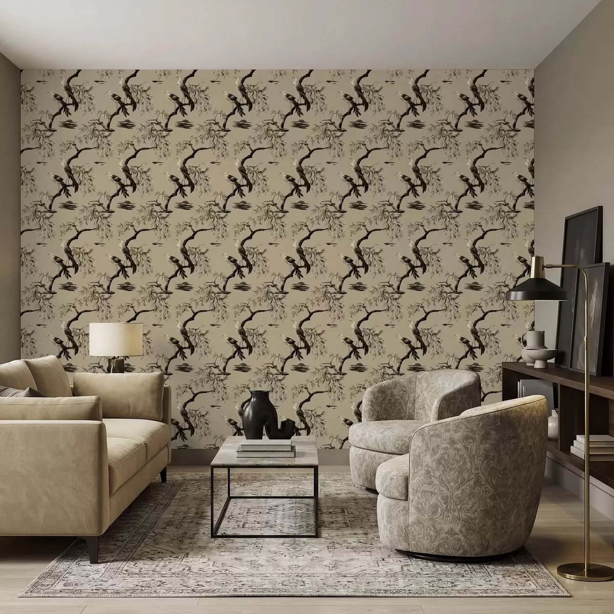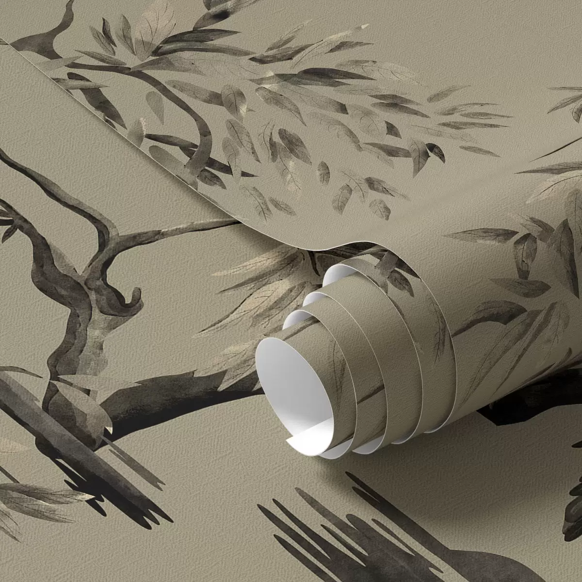 Papiers peints Oiseaux sur une branche dans des tons monochromes Nr. a01116v2
