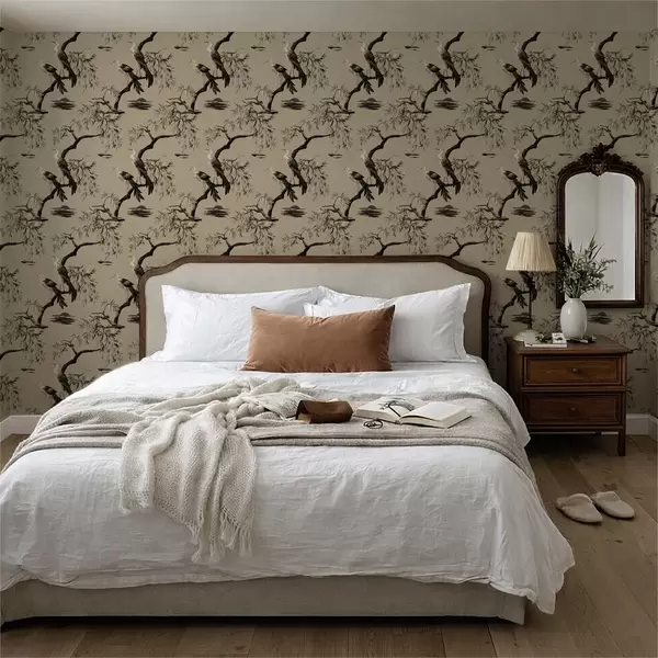 Papier peint Oiseaux sur une branche dans des tons monochromes a01116v2